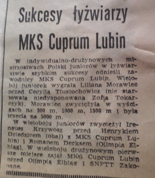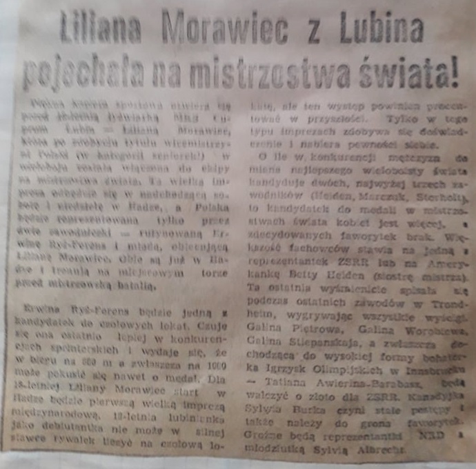 Była łyżwiarką MKS Cuprum Lubin i Zagłębia Lubin. Ogromny wpływ na jej karierę sportową miał Adam Kaźmierczyk, a w 1984 roku reprezentując Polskę i nasze miasto, wystąpiła na igrzyskach olimpijskich, jako druga zawodniczka Cuprum po Janinie Korowickiej (Innsbruck 1976 rok). Lilianna Friedrich-Morawiec opowiedziała nam swoją historię i jak pamięta koleżanki i kolegów z Cuprum Lubin.