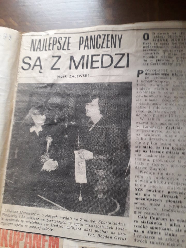 Lilianna Friedrich-Morawiec: Jakby to powiedzieć? Nie mam jakiś większych, bądź mniejszych wspomnień czy ten czas był gorszy czy lepszy od innego. Oczywiście był to dla mnie zaszczyt, że byłam nagradzana. Zdobywałam puchary czy pochwały. Nawet reporter z „Przeglądu Spotowego” z Warszawy przyjechał do Lubina do mojego liceum i specjalnie zrobili apel na moją cześć i wręczyli mi puchar, bo to wtedy zdobyłam takie trofeum dla najlepszego talentu. Byłam wtedy jedyna w ogólniaku, jakby to można powiedzieć taka sławna (śmiech).