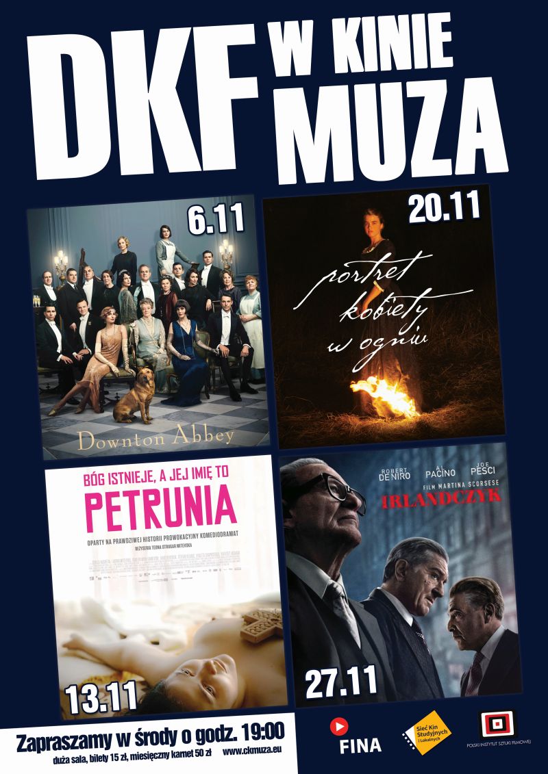 W kolejne środy w DKF-ie wyświetlone zostaną: „Bóg istnieje, a jej imię to Petrunia” (13 listopada), „Portret kobiety w ogniu” (20 listopada), „Irlandczyk” (27 listopada).