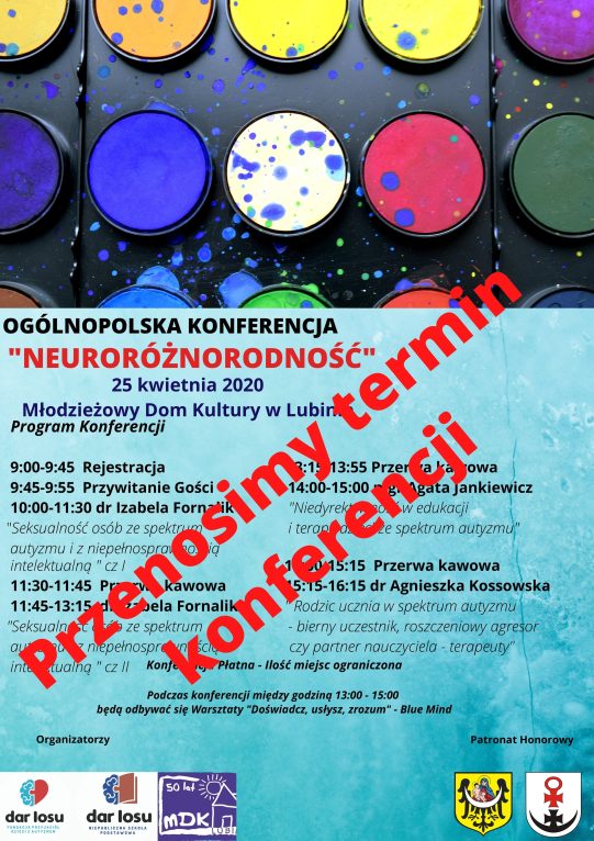 Natomiast planowana na 25 kwietnia w Lubinie konferencja „Neuroróżnorodność” została przełożona. Spotkanie organizowane przez Fundację Przyjaciół Dzieci z Autyzmem „Dar Losu”, które swoim patronatem objęli prezydent Lubina i starosta lubiński, najprawdopodobniej odbędzie się po wakacjach.