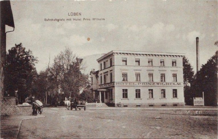 Ujęcie Hotelu Książę Wilhelm – Dworcowa wykonane z placu przed ówczesnym dworcem kolejowym. Fotografię wykonano w 1916 roku.