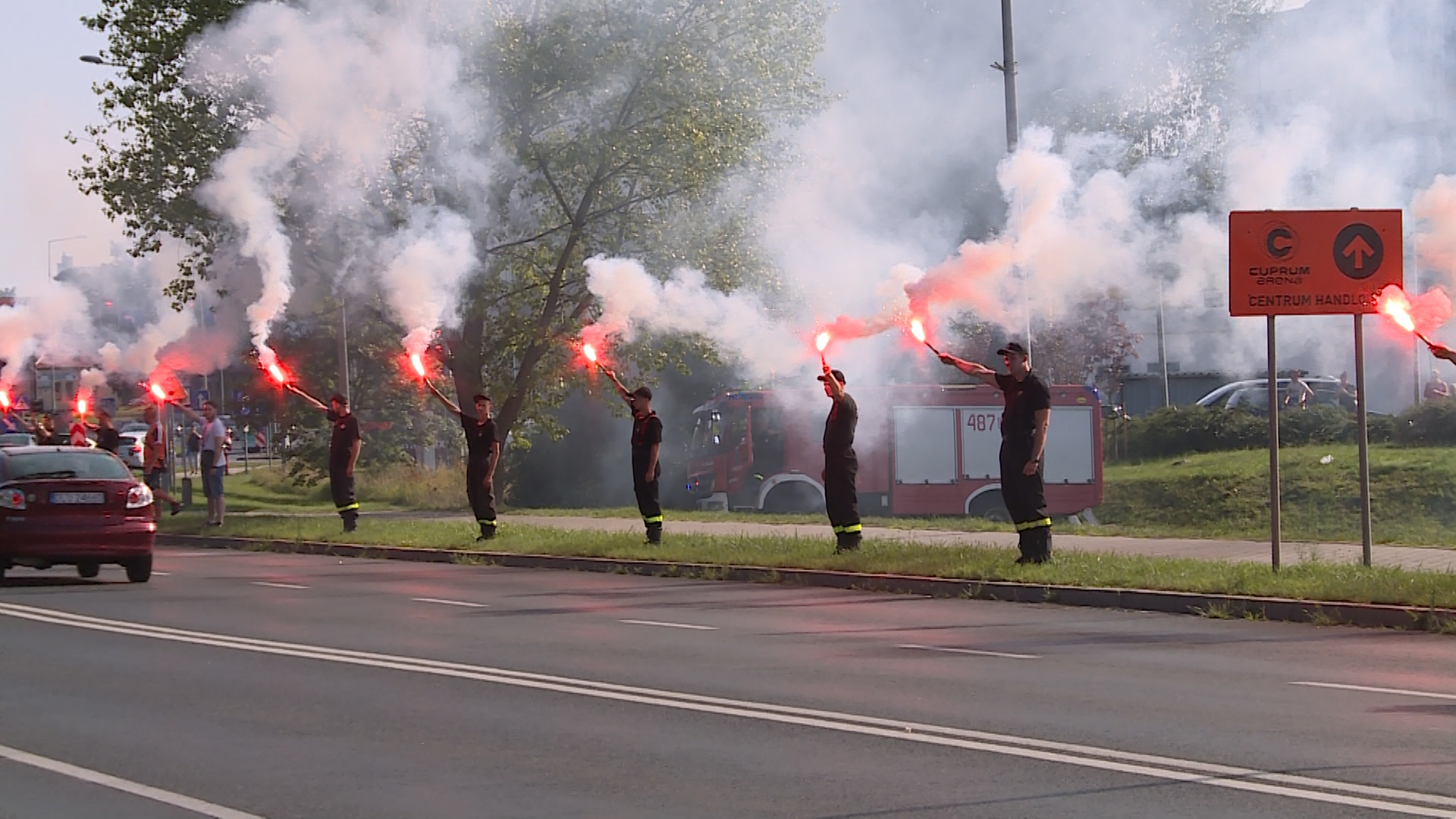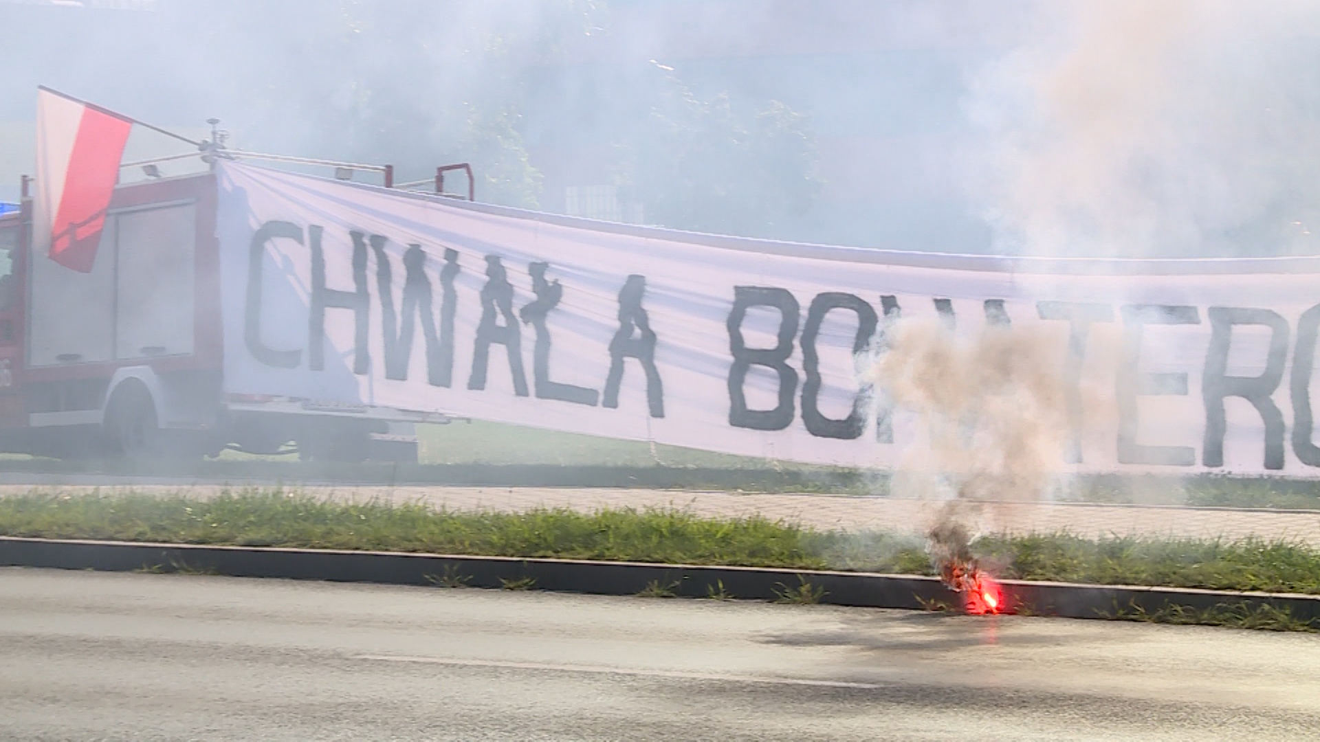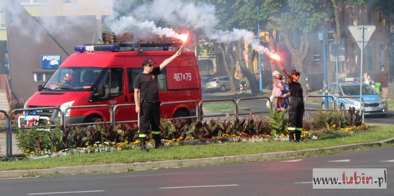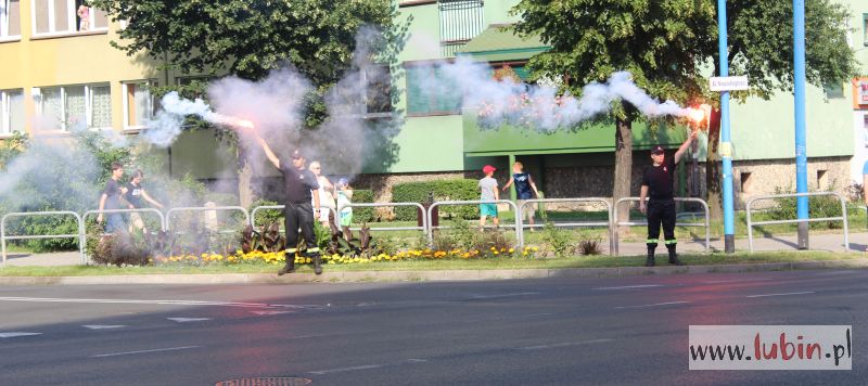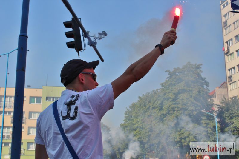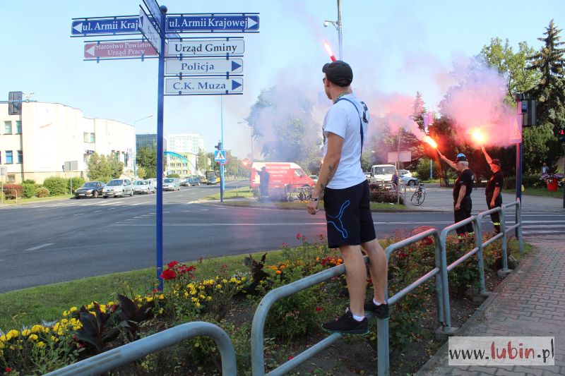 Również kibice Zagłębia Lubin uczcili rocznicę wybuchu powstania warszawskiego. Dokładnie o 17 odpalili race na skrzyżowaniu ulic Paderewskiego i Wrocławskiej.