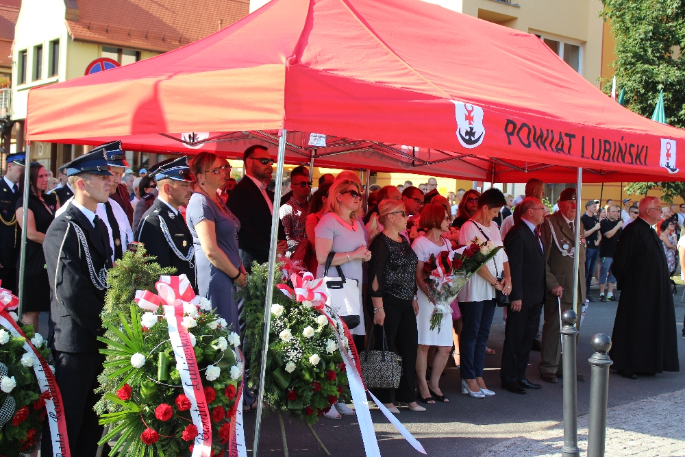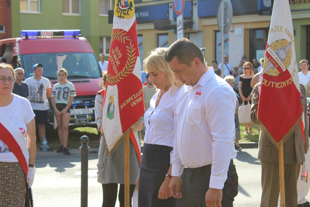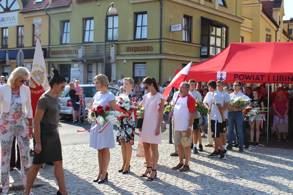 Do wspólnych obchodów mieszkańców zaprosił starosta, który wraz z Powiatową Radą Kombatantów, zaproszonymi gośćmi, przedstawicielami wielu instytucji oraz mieszkańcami powiatu lubińskiego, złożył kwiaty pod tablicami pamięci. Tradycyjnie o uroczystą oprawę uroczystości zadbali harcerze i strażacy, którzy w godzinę „W” włączyli syreny i odpalili race świetlne.