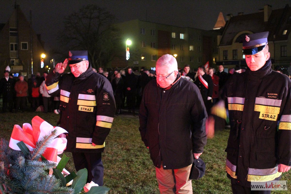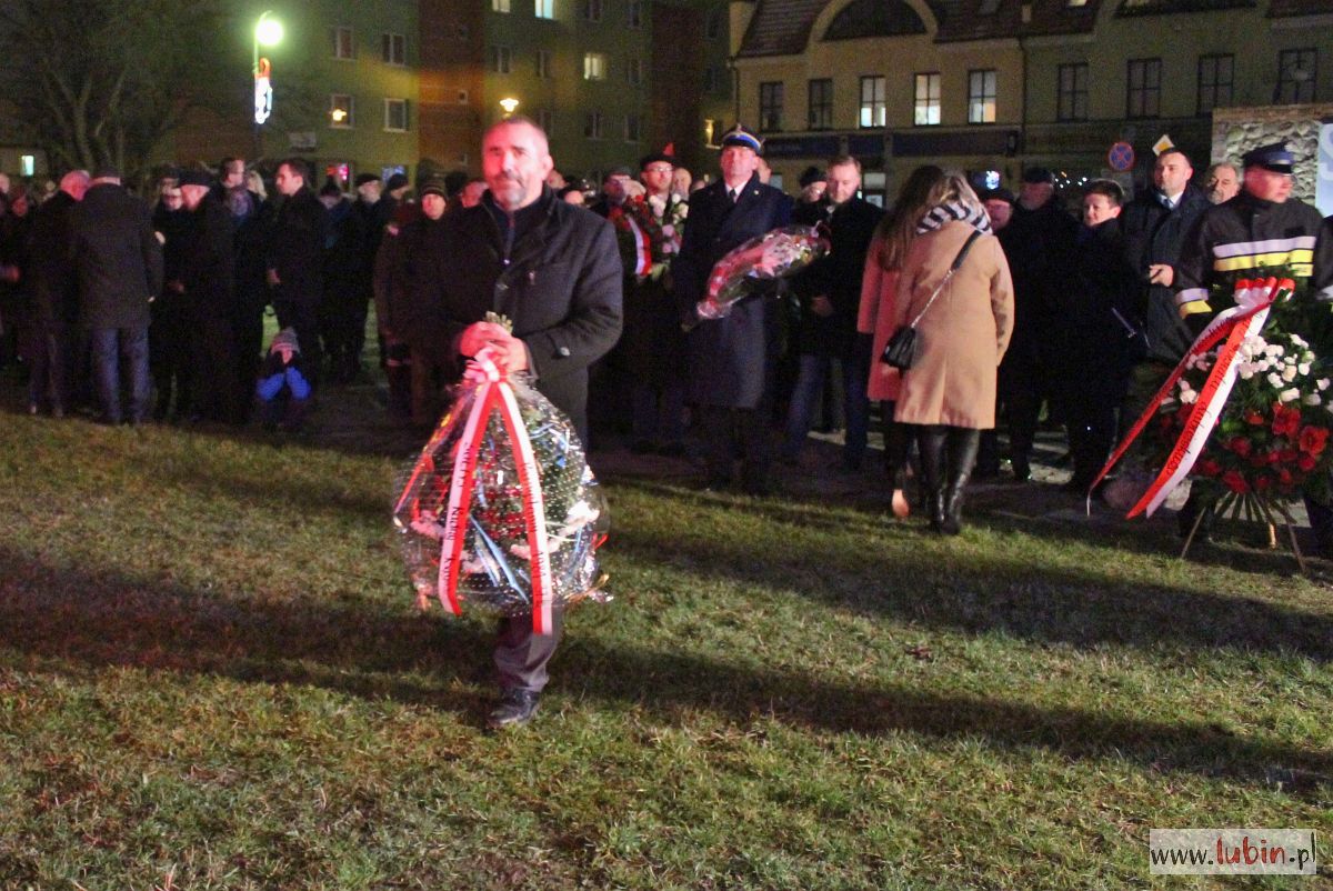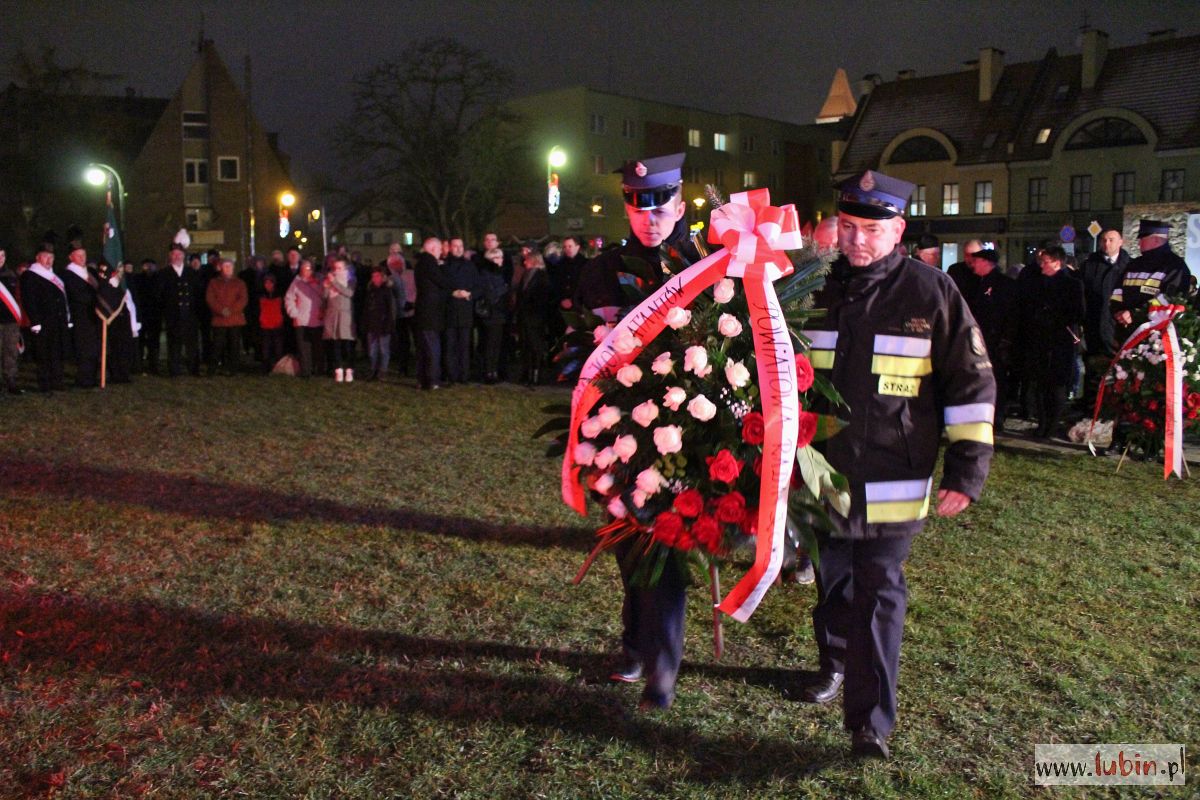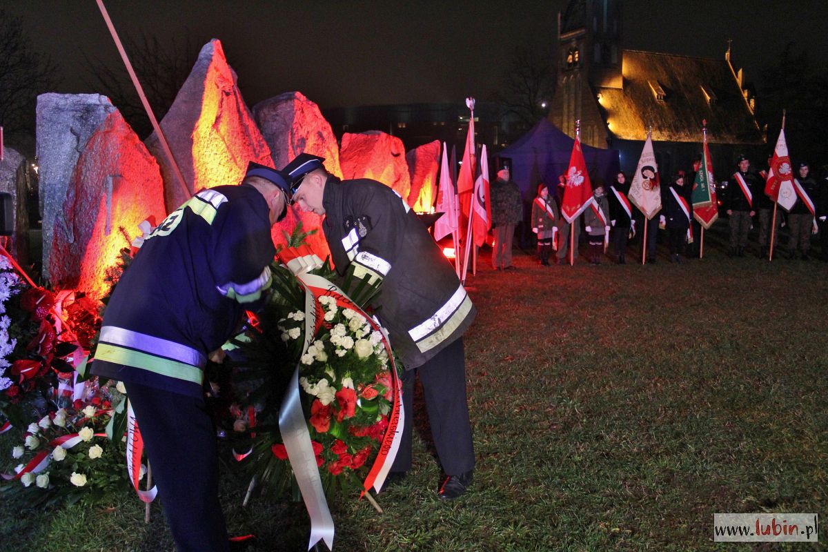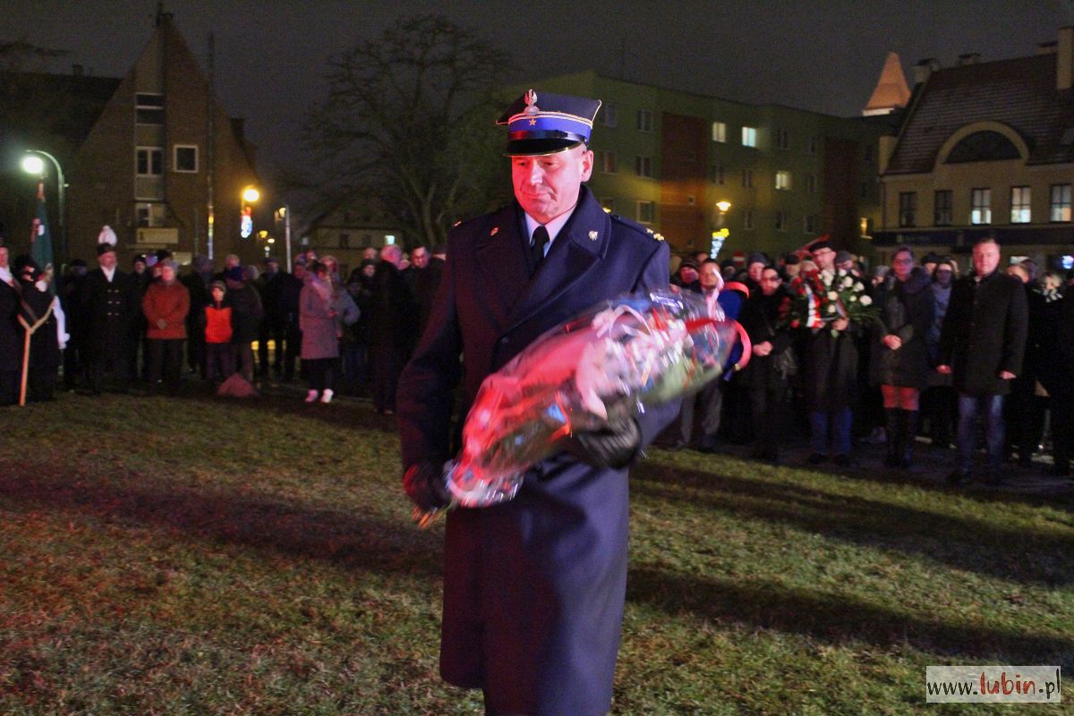 Lubin nie zapomniał o dzisiejszej rocznicy. Pod pomnikiem Pamięci Ofiar Lubina ’82, w towarzystwie strażaków z płonącymi pochodniami złożono kwiaty, wspominając wydarzenia sprzed 37 lat, czyli wprowadzenie stanu wojennego. – Należy o tym mówić i przypominać. Myślę, że coraz więcej młodych wraca do tamtych dni – podkreśla starosta lubiński Adam Myrda.