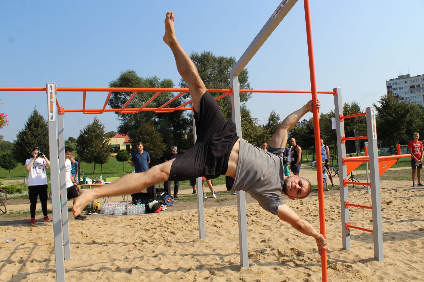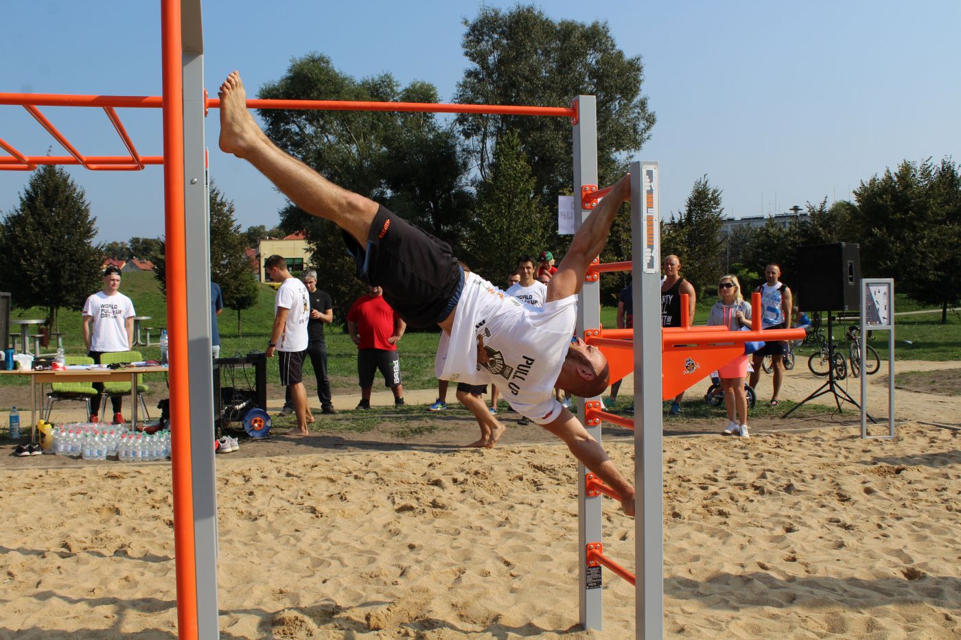 Chwilę po tym, jak symbolicznie otworzył siłownię, Romuald Kujawa sam przekonał się, że choć z pozoru urządzenia są proste, to sama kalistenika potrafi postawić przed sportowcem wiele wyzwań. Jako pierwszy podciągnął się na drążku w ramach obchodzonego dziś Światowego Dnia Podciągania (World Pull Up Day). Polska dołączyła do międzynarodowego wyzwania, polegającego na wykonaniu jak największej ilości siłowych podciągnięć na drążku