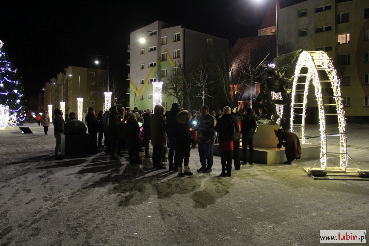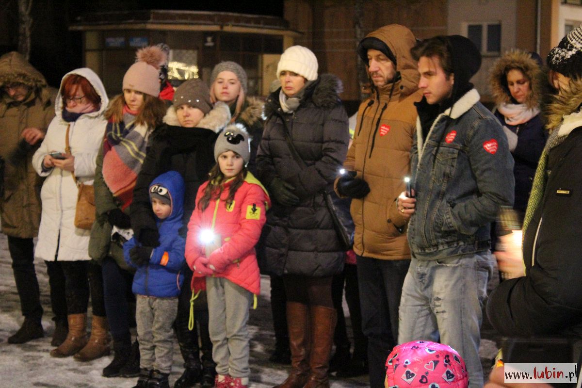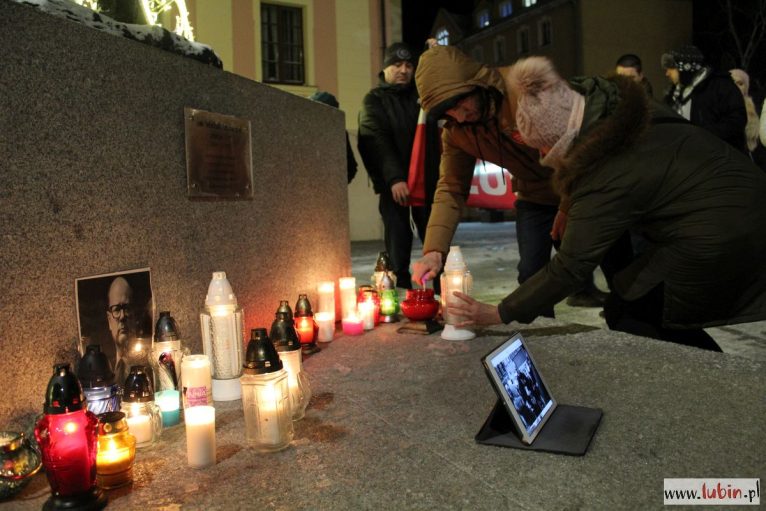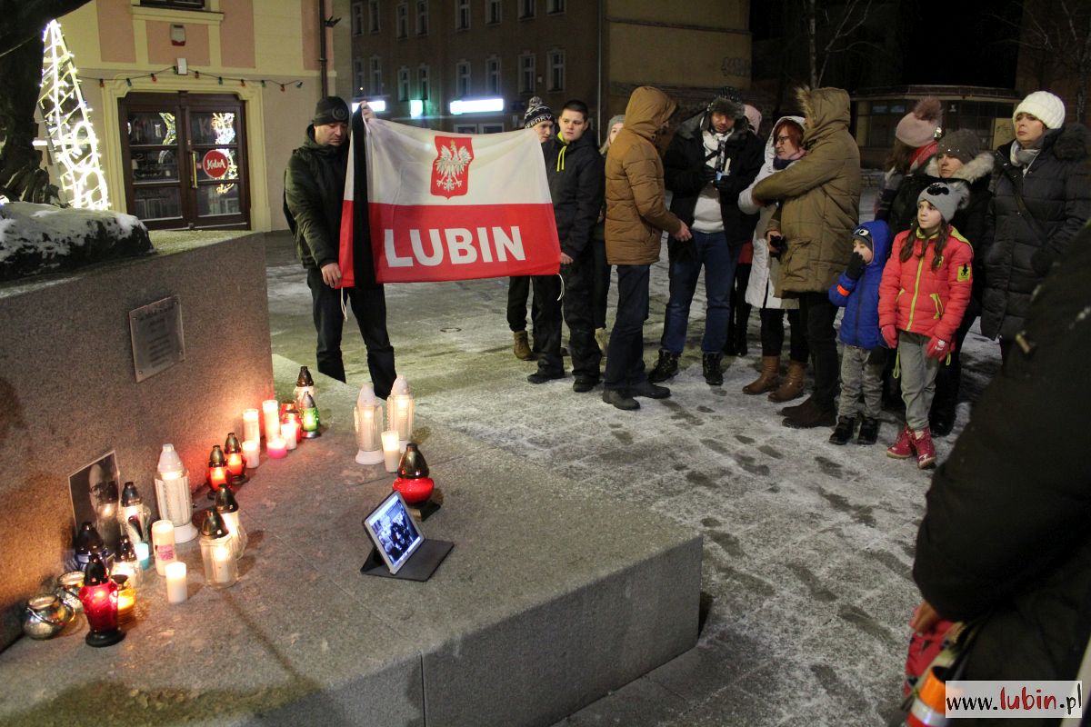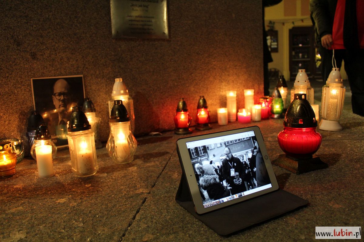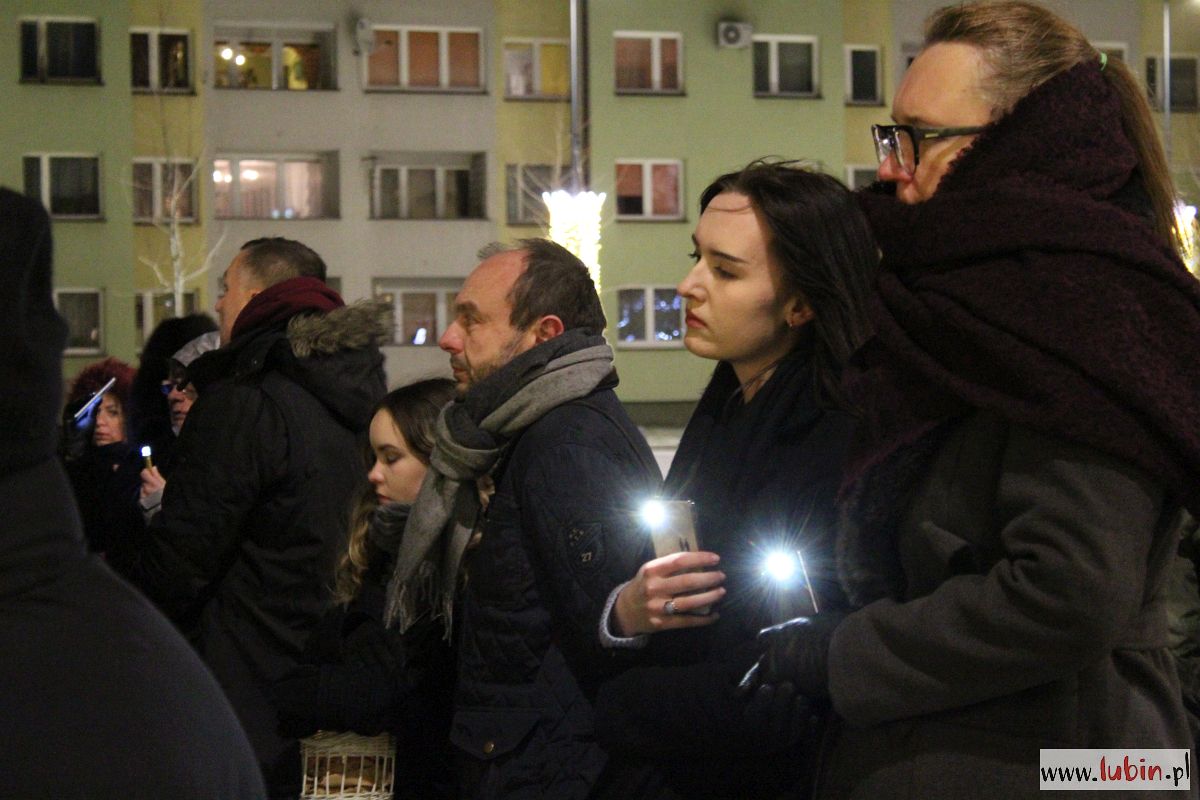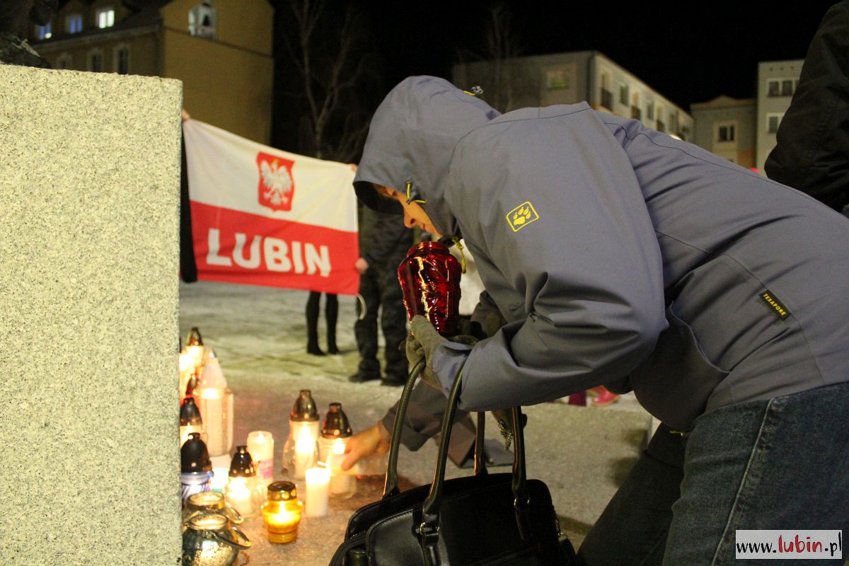 Pod rzeźbą Michała Archanioła zapłonęły znicze. Od godziny 20 lubinianie w milczeniu podchodzili, by postawić kolejne świeczki. Ci, którzy nie mieli ze sobą zniczy, przystawali w zadumie, zapalając symboliczne światełko telefonu komórkowego.