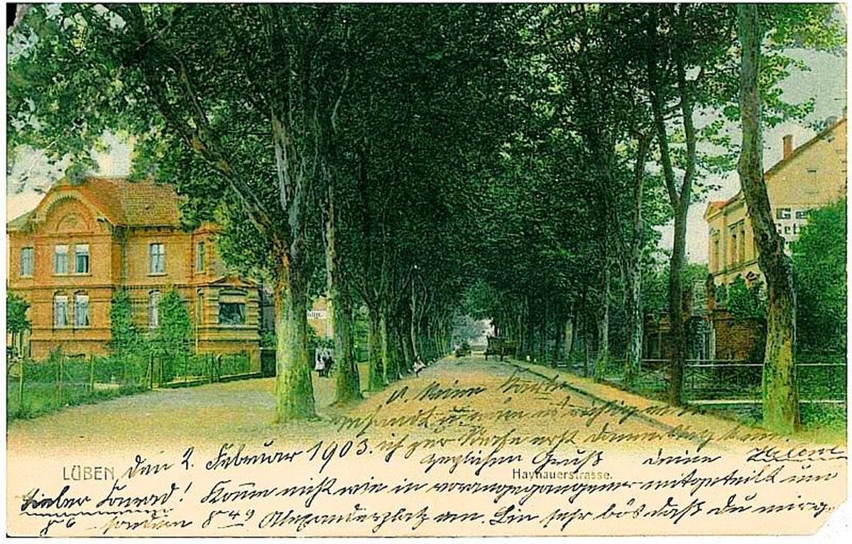 Na prezentowanej pocztówce Haynauerstrasse w całej swej krasie, widziana w kierunku zachodnim (w stronę przejazdu kolejowego).