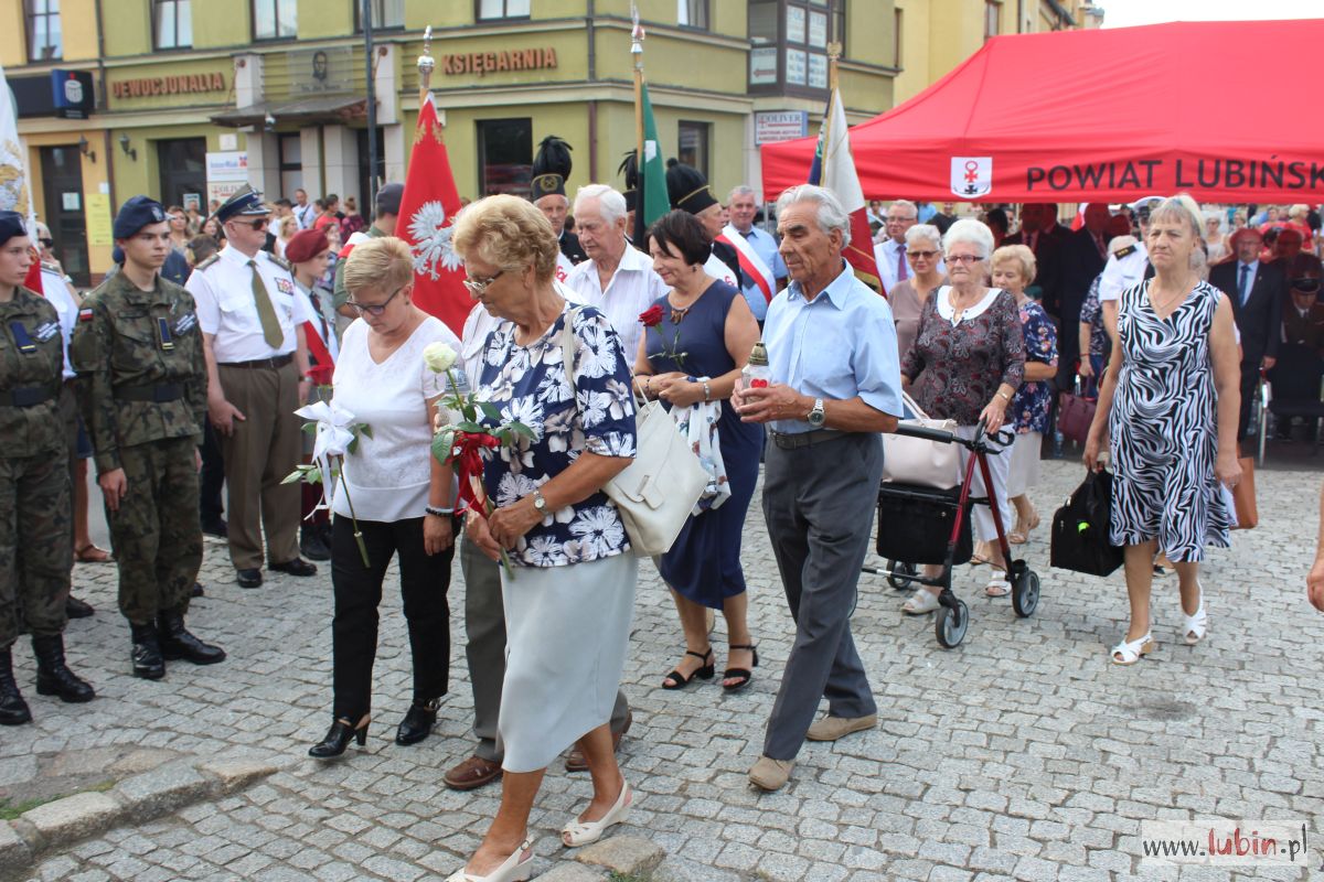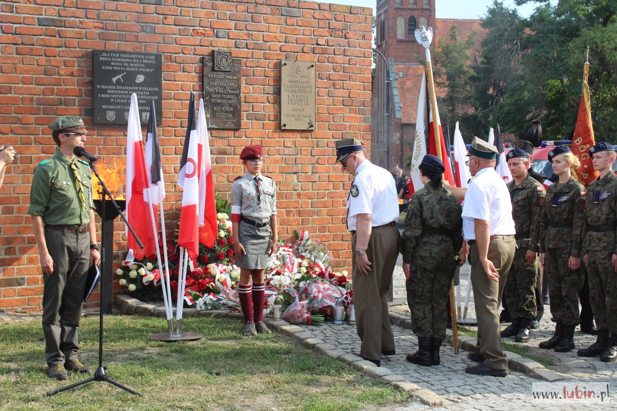 Główne uroczystości z kombatantami na czele odbywały się przy Murze Pamięci w centrum miasta. O oprawę uroczystości przy ul. Pruzi zadbało Starostwo Powiatowe w Lubinie. Harcerze recytowali wiersze i śpiewali żołnierskie piosenki. Tłumnie przybili mieszkańcy słuchali spektaklu w skupieniu i z powagą. Nie zniechęcił ich nawet upał.