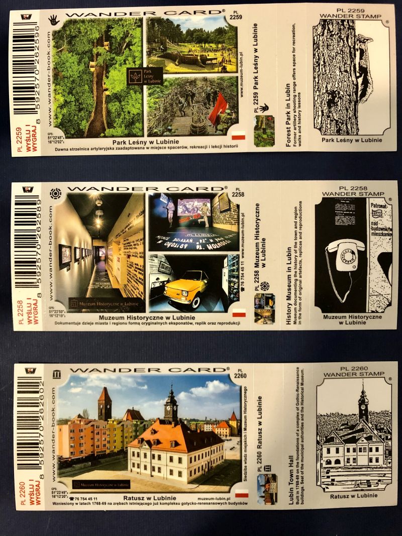 Znaczki parku Leśnego, Muzeum Historycznego oraz ratusza miejskiego można kupić w Infopunkcie Muzeum Historycznego w Lubinie. Natomiast w kawiarni w parku Wrocławskim można nabyć karty poświęcone lubińskiemu zoo. Kupimy tu również dzienniki.