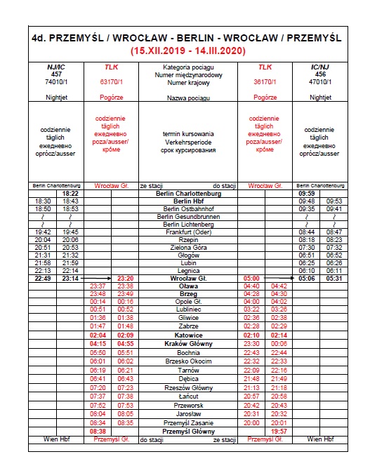 Oprócz połączeń relacji Wien Hbf/Budapest Keleti/Przemyśl Główny – Berlin Charlottenburg, Zagłębie Miedziowe zyska też cztery inne pary pociągów PKP Intercity: Bielsko-Biała Główna – Świnoujście, Lublin – Szczecin Główny, Katowice – Świnoujście oraz Kraków Główny – Szczecin Główny.