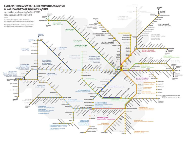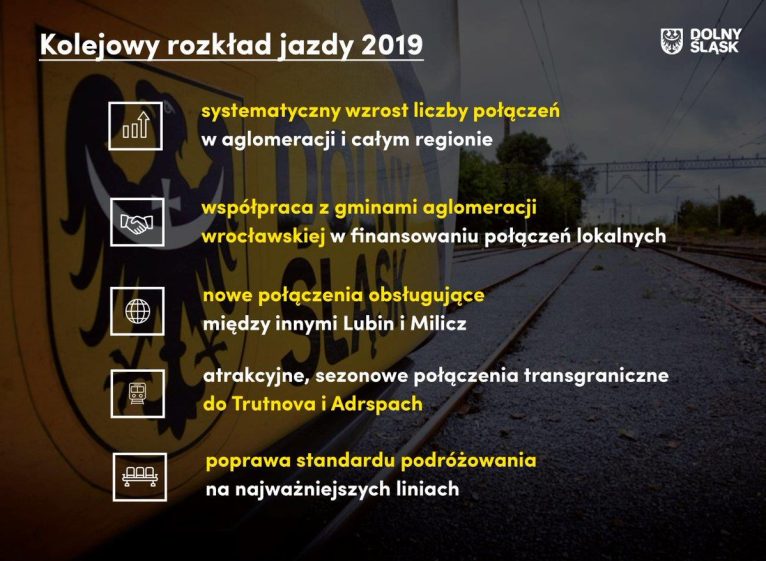W nowym rozkładnie ma zwiększyć się m.in. liczba pociągów kursujących z Wrocławia do Jelcza Laskowic (dwie dodatkowe pary pociągów) oraz Strzelina (jedna dodatkowa para). Dodatkowa para pociągów w godzinach porannych przewidziana jest też na trasie Legnica – Dzierżoniów.