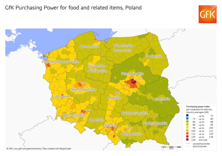 64% wszystkich wydatków Polaków stanowią zakupy żywności, ubrań i środków farmaceutycznych oraz środków higienicznych. Na pierwszym miejscu w każdej tych kategorii jest Warszawa, według danych przedstawionych przez GFK GeoMarkieting bogactwo skupia się przede wszystkim wokół sześciu największych miast.