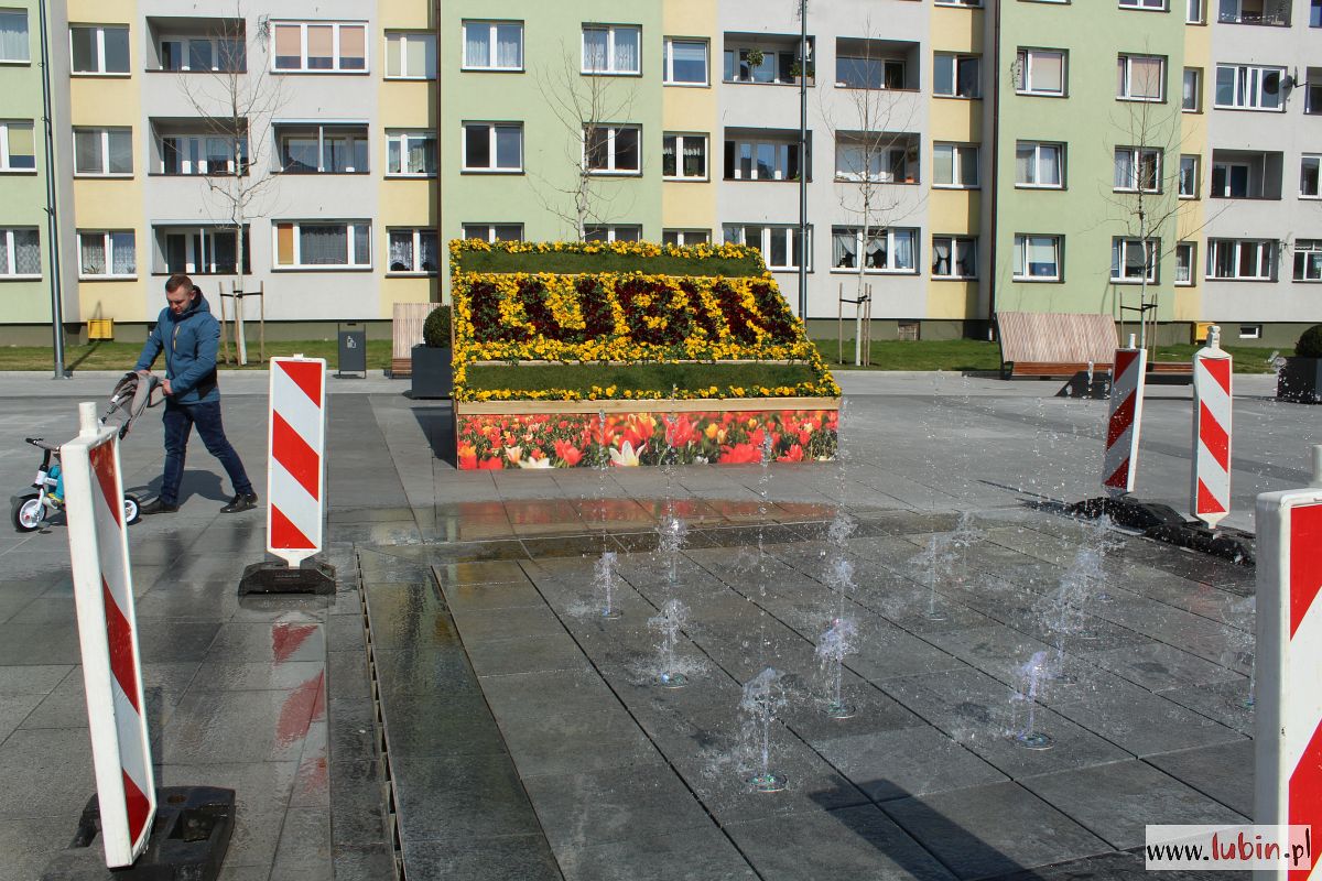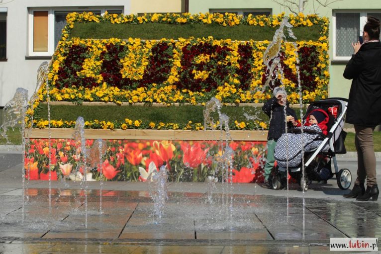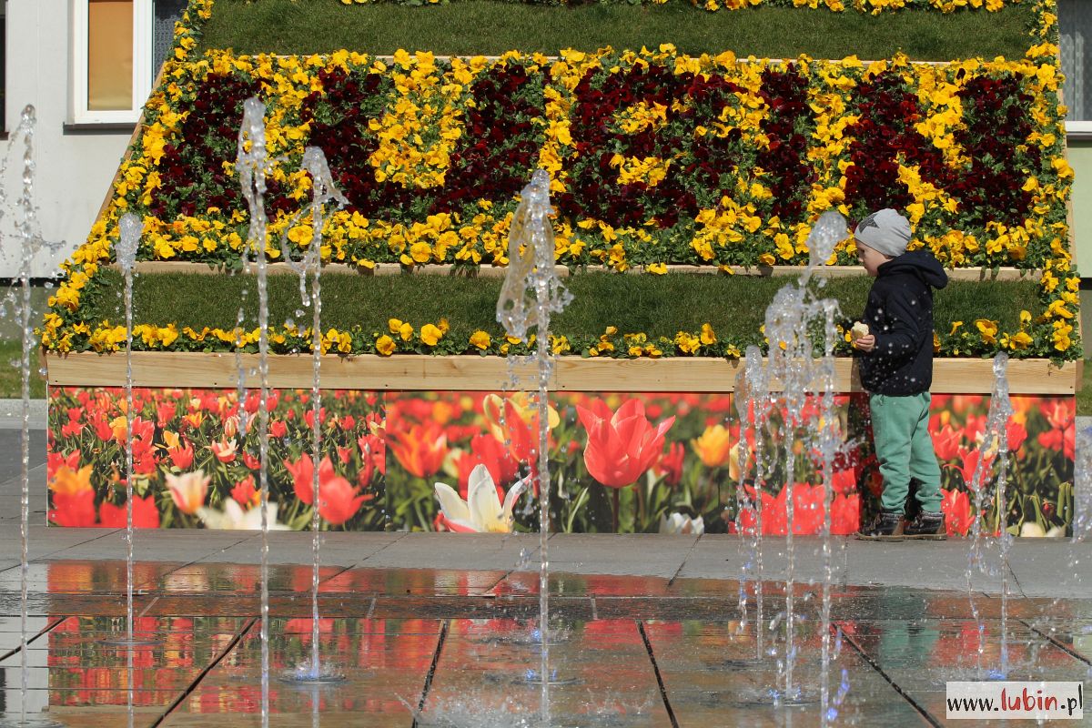 Kwiatowy napis pojawił się w pobliżu ratusza również w ubiegłym roku, choć wtedy stworzono go z innych kwiatów. Natomiast bratkowy „Lubin” postawiono w pobliżu fontanny, która akurat dzisiaj została uruchomiona.