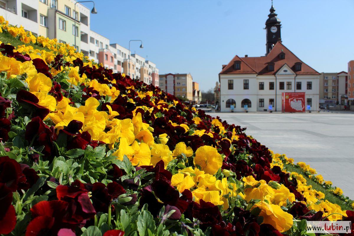 Na lubińskim rynku zrobiło się wiosennie, a to za sprawą kwiatów, które pojawiły się tuż obok fontanny. To zapowiedź festiwalu, który ma się odbyć w mieście na początku maja, ale i dobre miejsce na zrobienie sobie zdjęcia, ponieważ bratki układają się w napis „Lubin”.