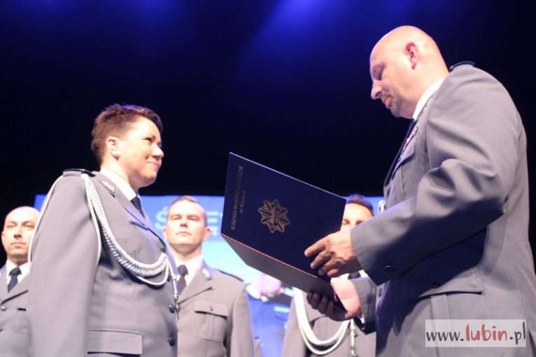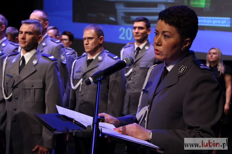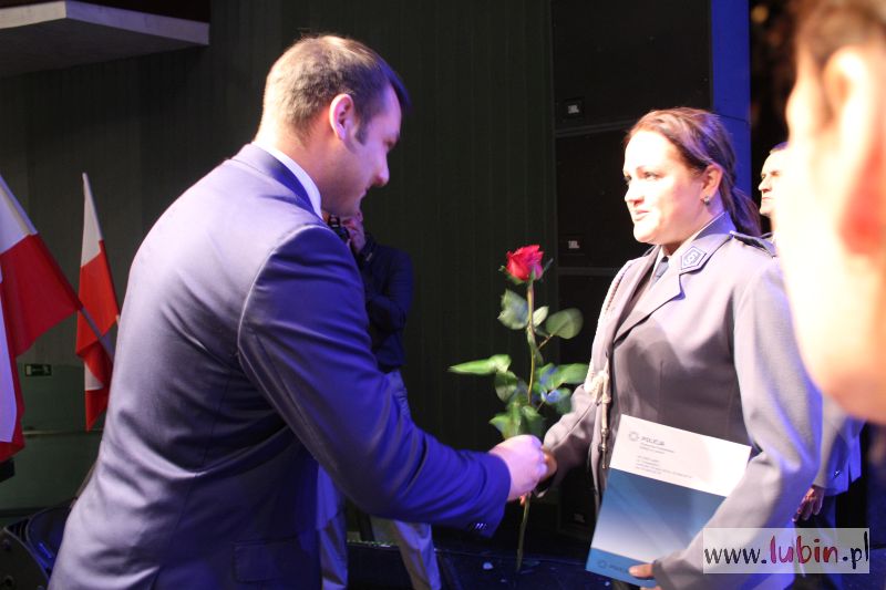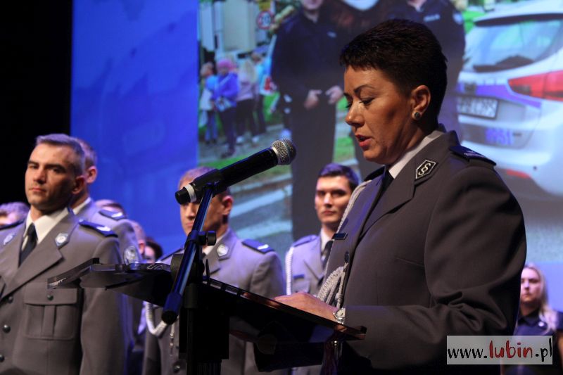 O tym, że policjant to niezwykły zawód, a właściwie służba społeczeństwu mówiła dziś także komendant lubińskiej jednostki Joanna Cichla: – To prawdziwe powołanie, które niesie ze sobą liczne trudy i niebezpieczeństwa, ale także satysfakcję z pomagania innym osobom, gdyż w etos naszej służby wpisana jest pomoc potrzebującym i słabszym – przyznaje. – Służba w policji wymaga wielu poświęceń, niejednokrotnie tych największych. Cieszę się, że dla większości Polaków, a przede wszystkim mieszkańców powiatu lubińskiego, słowo policja stało się synonimem słowa bezpieczeństwo. Jesteśmy formacją, która dba o przestrzeganie prawa i porządku publicznego, dlatego też cieszymy się wysokim oraz stałym zaufaniem wśród mieszkańców naszego powiatu – stwierdza, dodając, że ostatni rok był dobry dla lubińskiej policji i bezpieczeństwa mieszkańców powiatu.