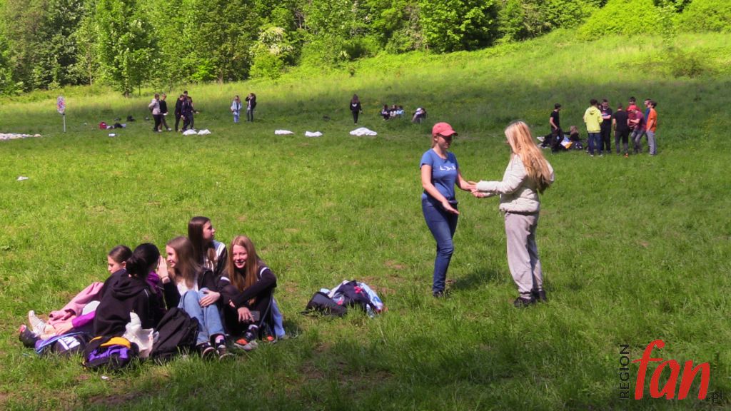 Taka propozycja okazała się strzałem w dziesiątkę. W Myśliborzu uczniowie czuli się doskonale. Podzieleni na grupy zwiedzali szlak w towarzystwie przewodnika PTTK, piekli kiełbaski przy ognisku, korzystali z zajęć w Centrum Edukacji Ekologicznej Salamandra oraz oddawali się na polanie słonecznym kąpielom. Młodzież nie ukrywała zaskoczenia, że zamiast do szkolnych ławek spotkali się na wycieczce.