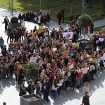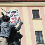 Na koniec protestu młodzi ludzie ustawili się wokół rynku i wspólnie śpiewali piosenki.