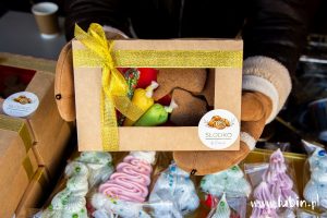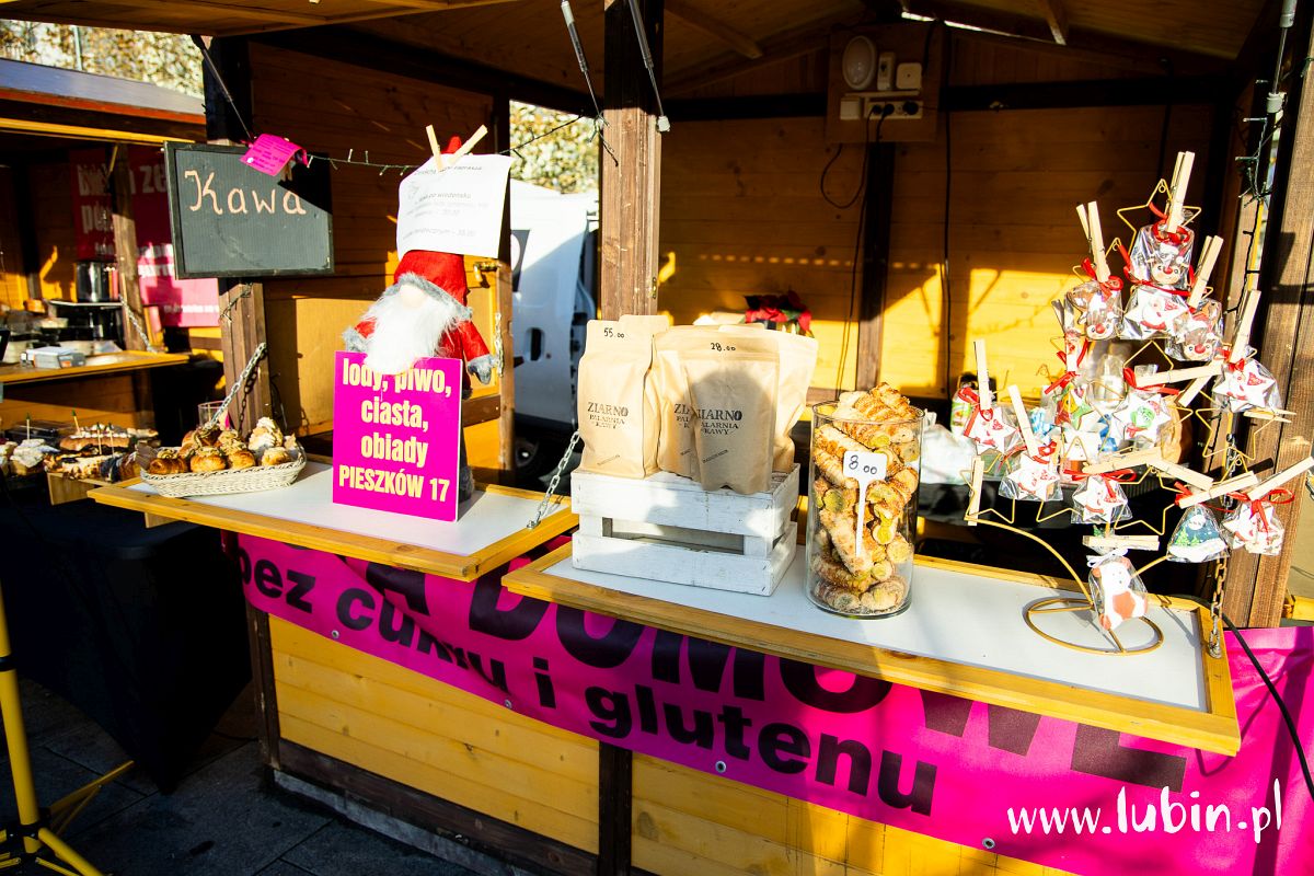 Na jednym ze stoisk znajdziemy również pierniki do własnoręcznego ozdobienia wykonane przez cukiernię Słodko by Coconto. Jest tu zresztą o wiele więcej słodkości. Lena, którą tu spotkacie, zachęca nie tylko do zakupów, ale i wsparcia 6-letniego lubinianina Szymona Migdy, chorującego na dystrofię mięśniową Duchenne’a i zespół Dietsa-Jongmansa, w jego walce o zdrowie. W weekend można było wrzucić pieniądze do stojącej tu puszki, teraz można skorzystać ze strony siepomaga.pl – namiary znajdziecie na plakacie, który ustawiono przy stoisku oraz TUTAJ.