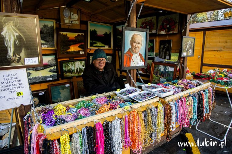 Swoje wytwory na jednym ze stoisk wystawia także Witold Klaudel z Lubina, którego bywalcy lubińskiego Jarmarku z pewnością znają, bo już tu gościł. Sprzedaje on wykonane przez siebie obrazy oraz bransoletki.