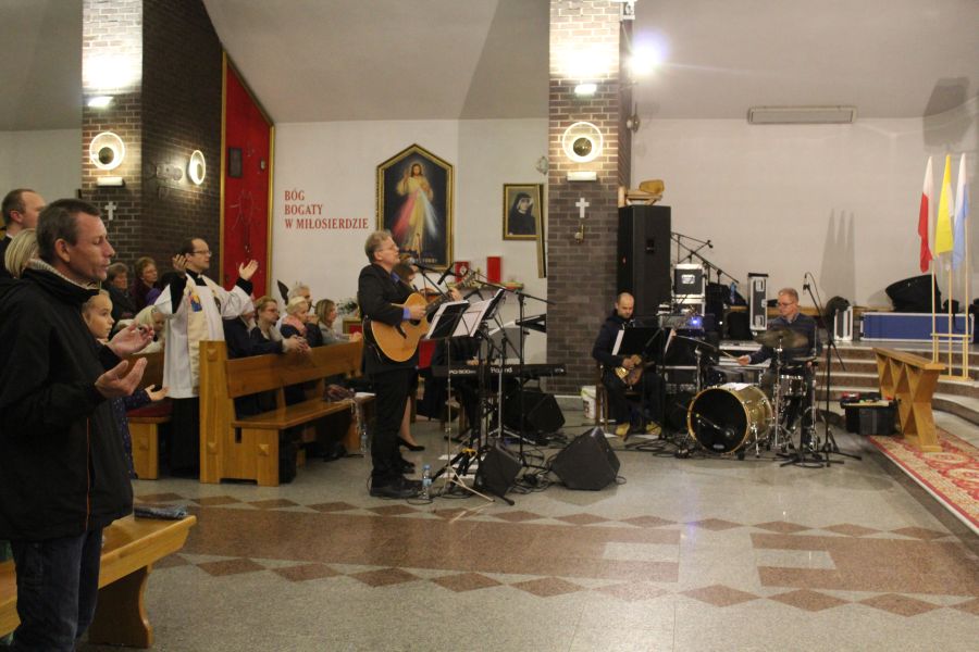 Po mszy złożono hołd i kwiaty pod pomnikiem Jana Pawła II. Następnie parafianie wraz z Leopoldem Twardowskim i muzykami inicjatywy poznańskiego wielbienia wspominali papieża w rytmie soulu, jazzu i poezji śpiewanej.