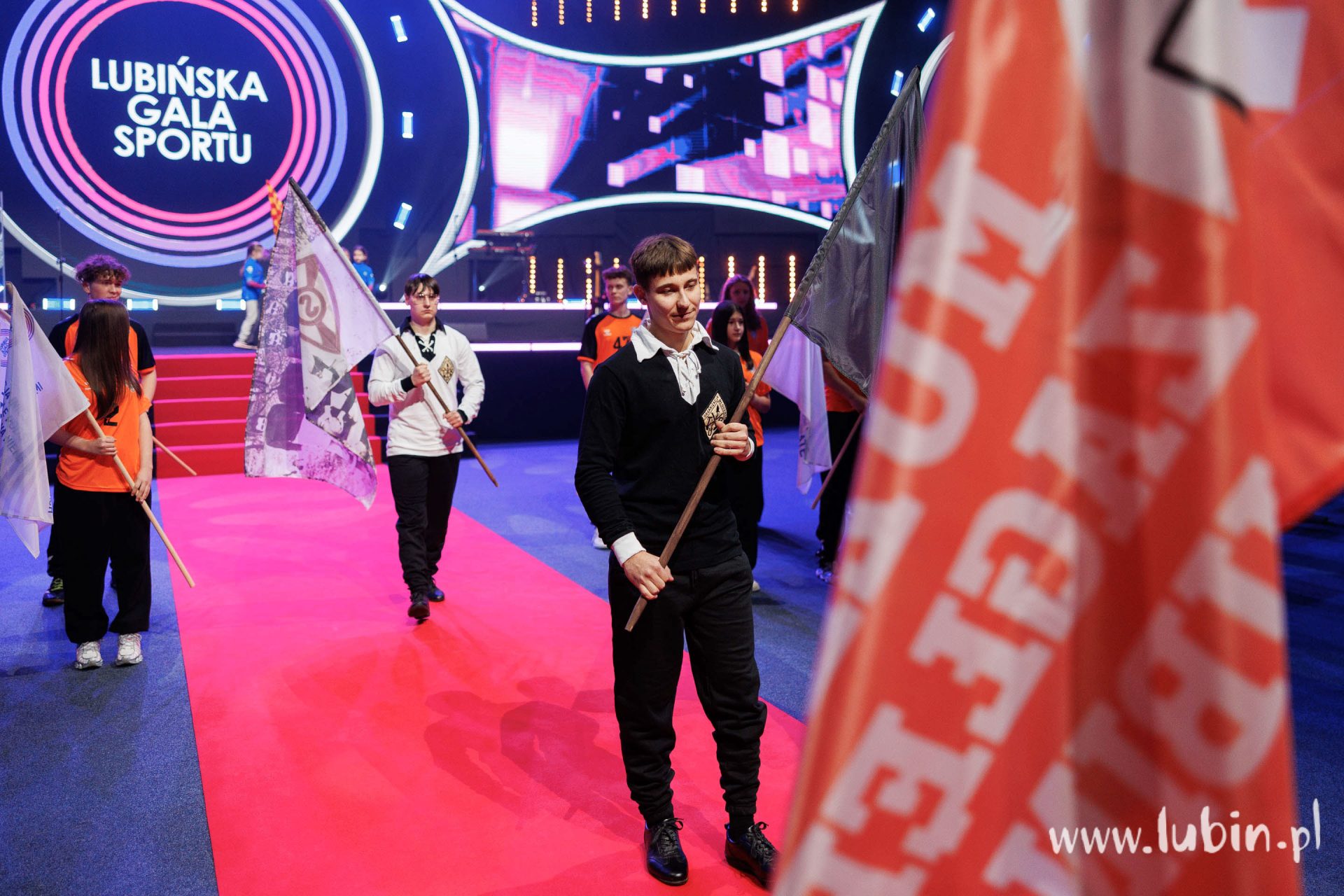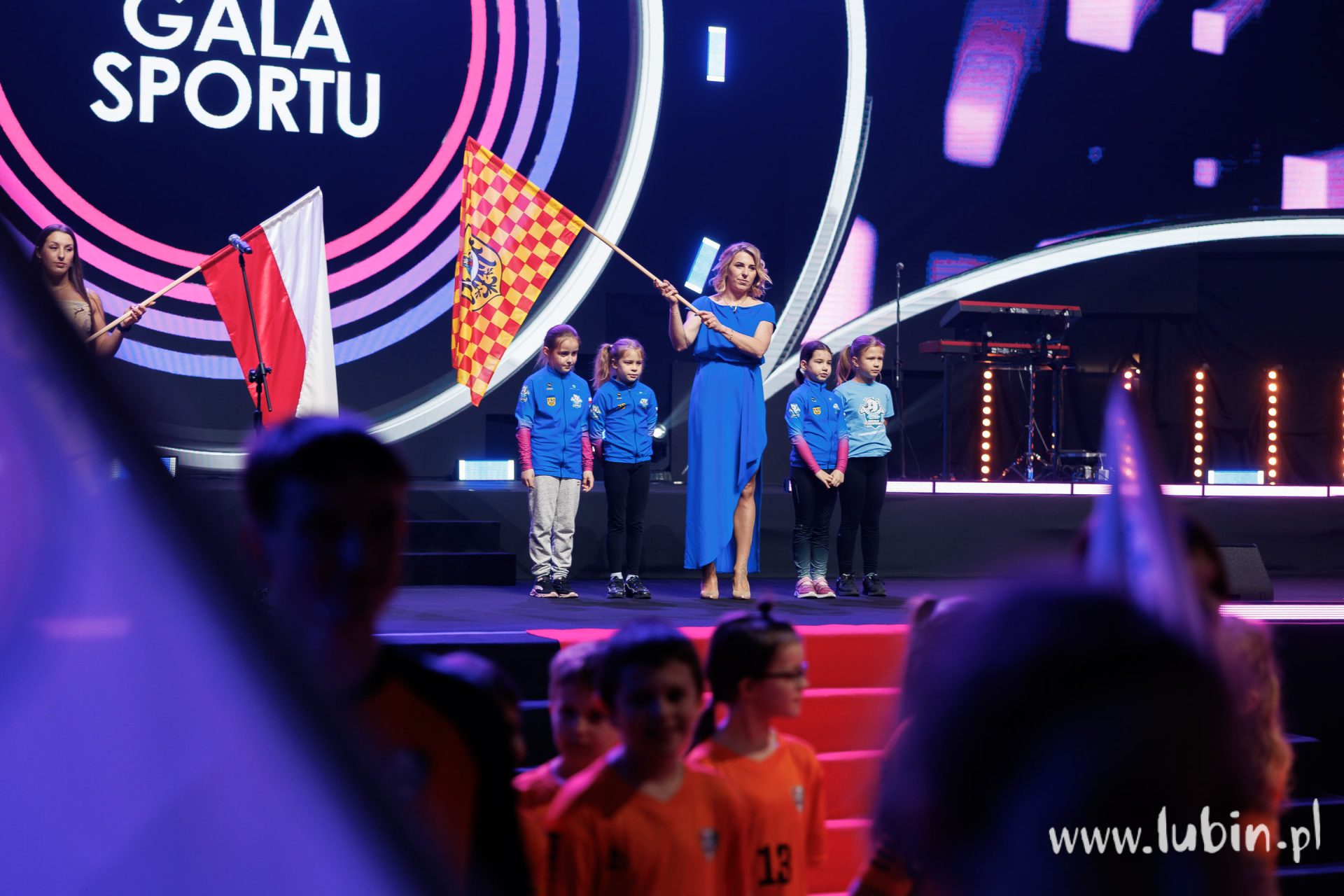 Natalia Czerwonka została dzisiejszego wieczoru dodatkowo wyróżniona, zaproponowano jej bowiem, by podczas wydarzenia niosła flagę Lubina.