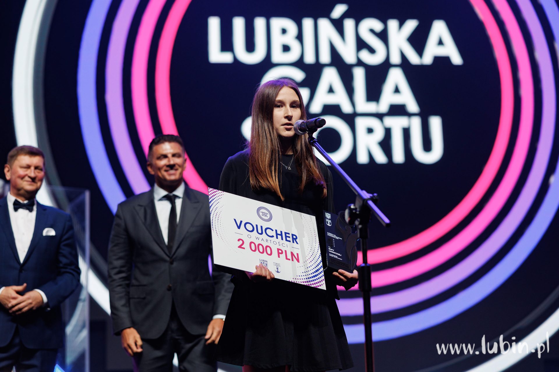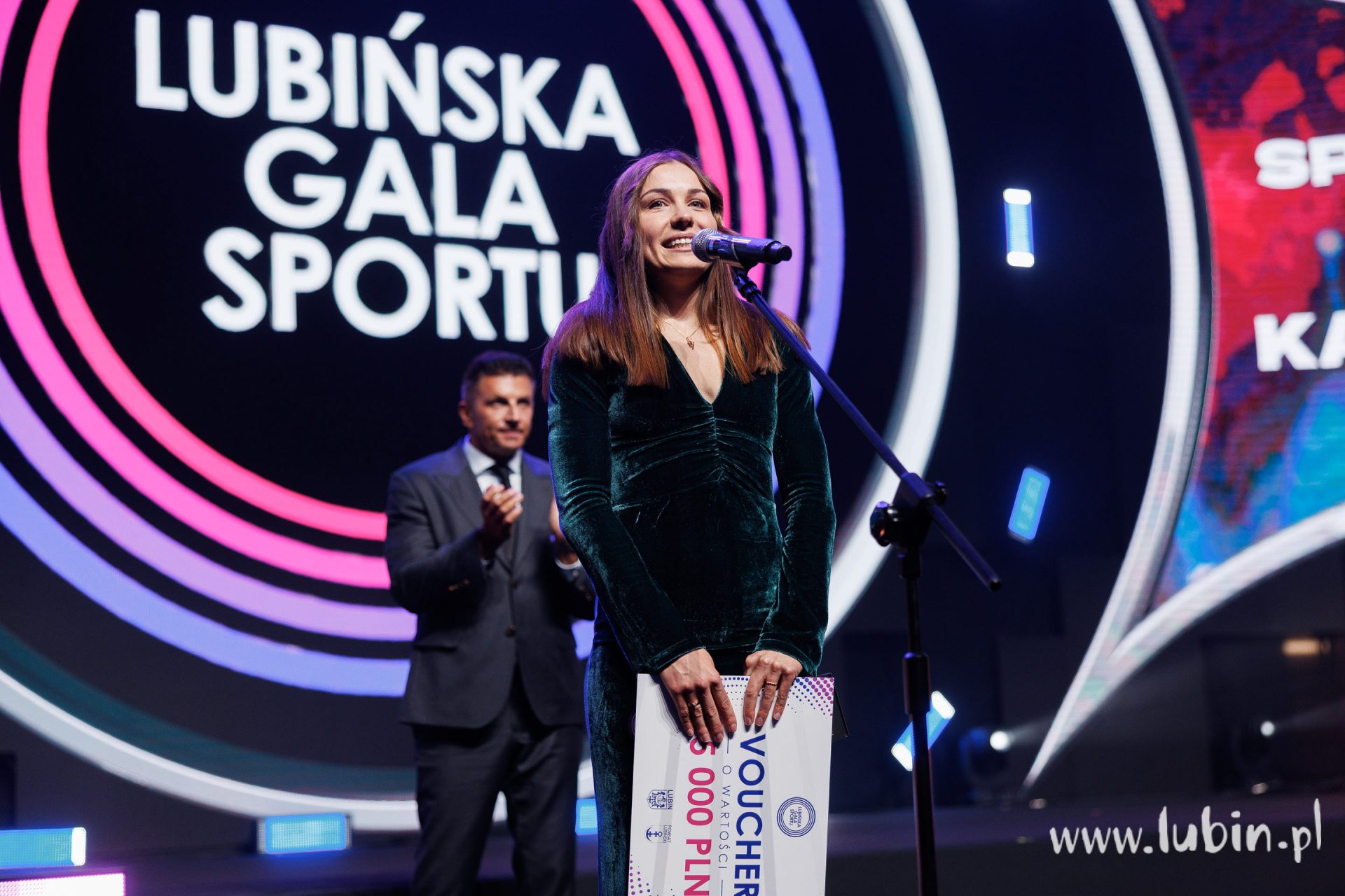 – Niesamowite emocje. Jestem dumna, że wcześniej, podczas Igrzysk Olimpijskich niosłam polską flagę, teraz na Gali lubińską. To tu się zaczęła moja przygoda ze sportem. Jestem związana z Lubinem. Śmieję się, że jestem córką górnika. Dziadek górnik, tata górnik, czyli taka miedziowa tożsamość. Mam nadzieję, że każdy kolejny sportowiec, który w następnych latach będzie niósł tę flagę, będzie tak samo dumny – podkreśla panczenistka, dodając, że Gala Sportu organizowana w jej rodzinnym mieście to dla niej niesamowite przeżycie: – Wielkie święto sportu w Lubinie, który jest tak naprawdę miastem mistrzów sportu. Mamy tu wiele dyscyplin – do wyboru, do koloru, każde dziecko może spróbować wszystkiego, a do tego trzy reprezentantki na Igrzyskach Olimpijskich w łyżwiarstwie szybkim. To cieszy moje serce ogromnie. Świętujmy, bawmy się tym sportem – mówi Natalia. – Frekwencja na trybunach pokazuje, że naprawdę sport jest ważnym elementem naszego miasta – dodaje.