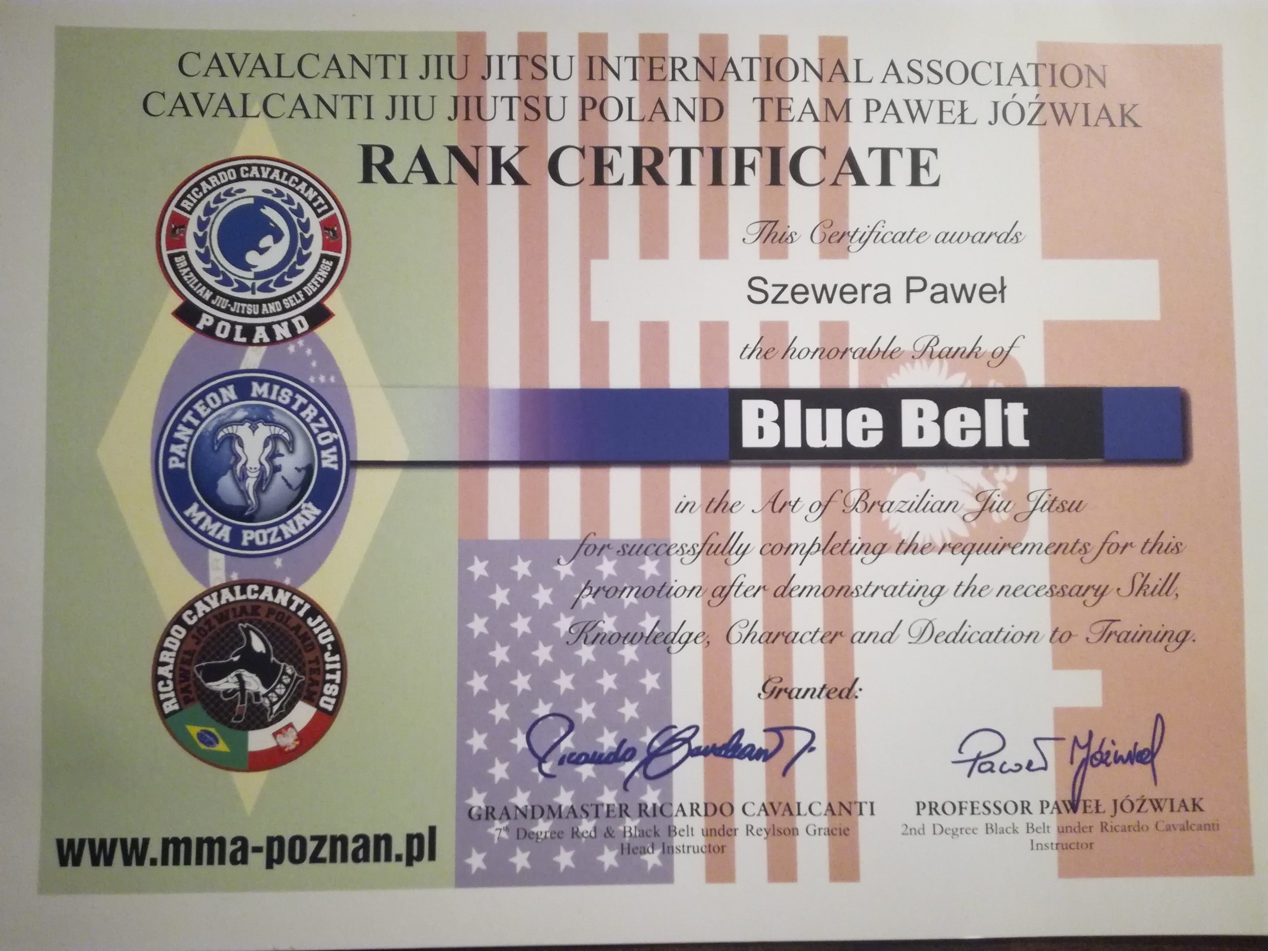 Paweł Szewera posiadający stopień 2 dan Modern Ju-Jitsu oraz jego asystent i instruktor Paweł Kużdeba 3 kyu MJJ, wzięli udział w  seminarium z Grandmaster Ricardo Cavalcanti (7 dan-pas czarno-czerwony w Brazylijskim Jiu-Jitsu), którego przedstawicielem w Polsce jest Panteon Mistrzów MMA Poznań – Paweł Jóźwiak. Mistrz po raz drugi odwiedził nasz kraj, by poprowadzić trzydniowe seminarium brazylijskiego jiu jitsu.