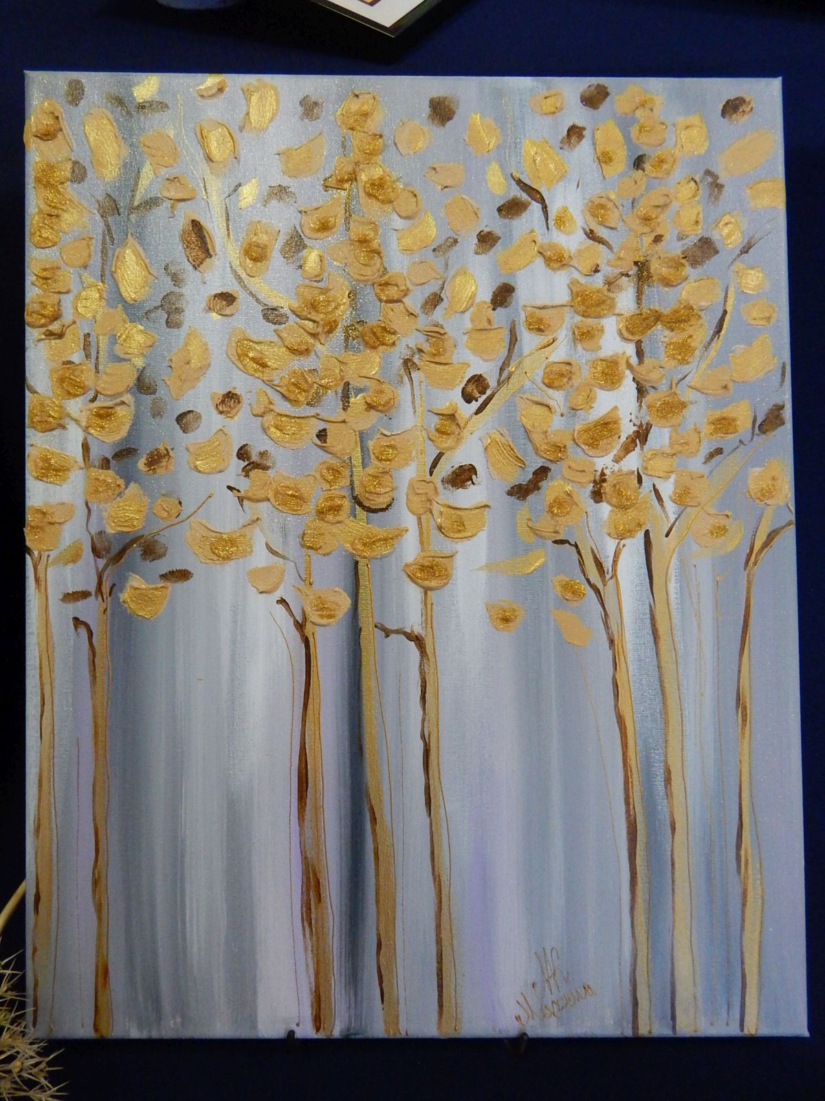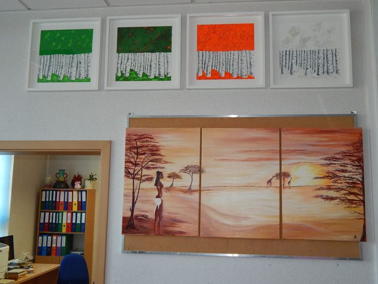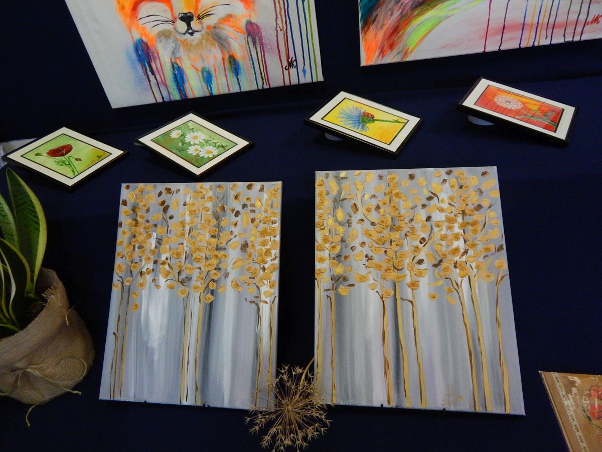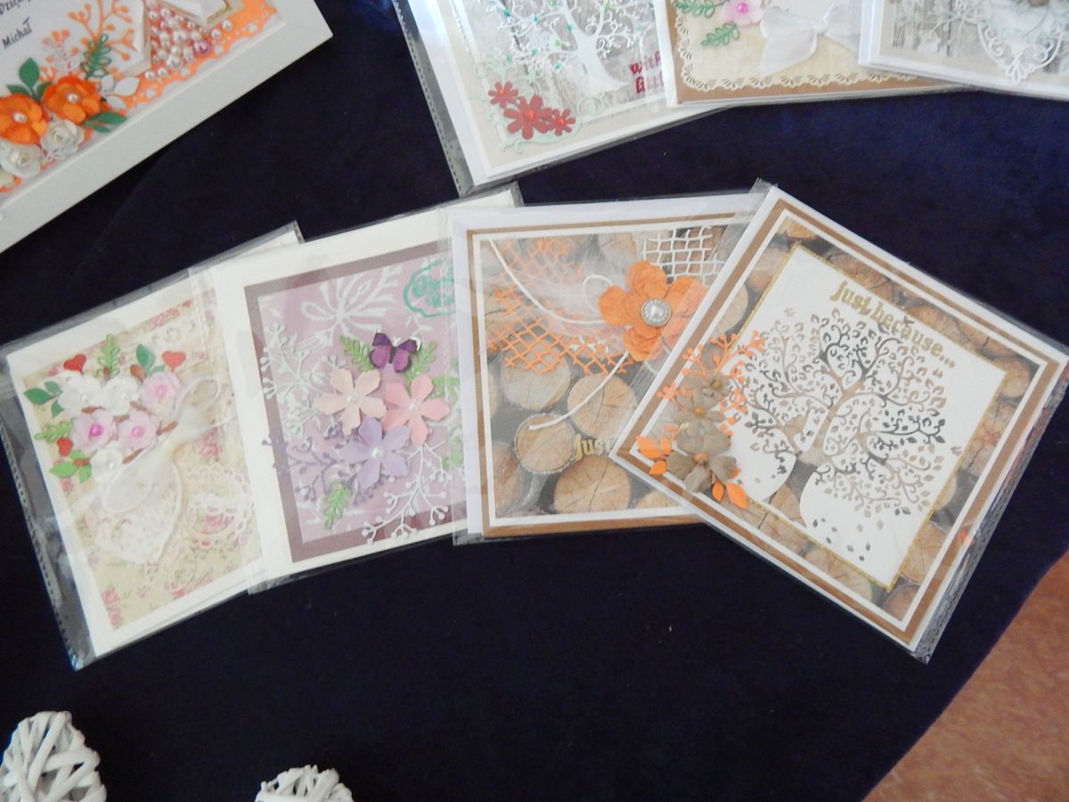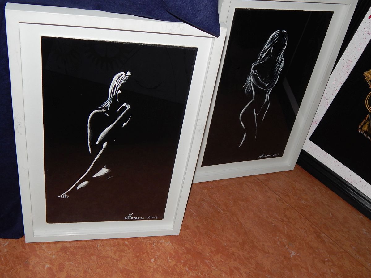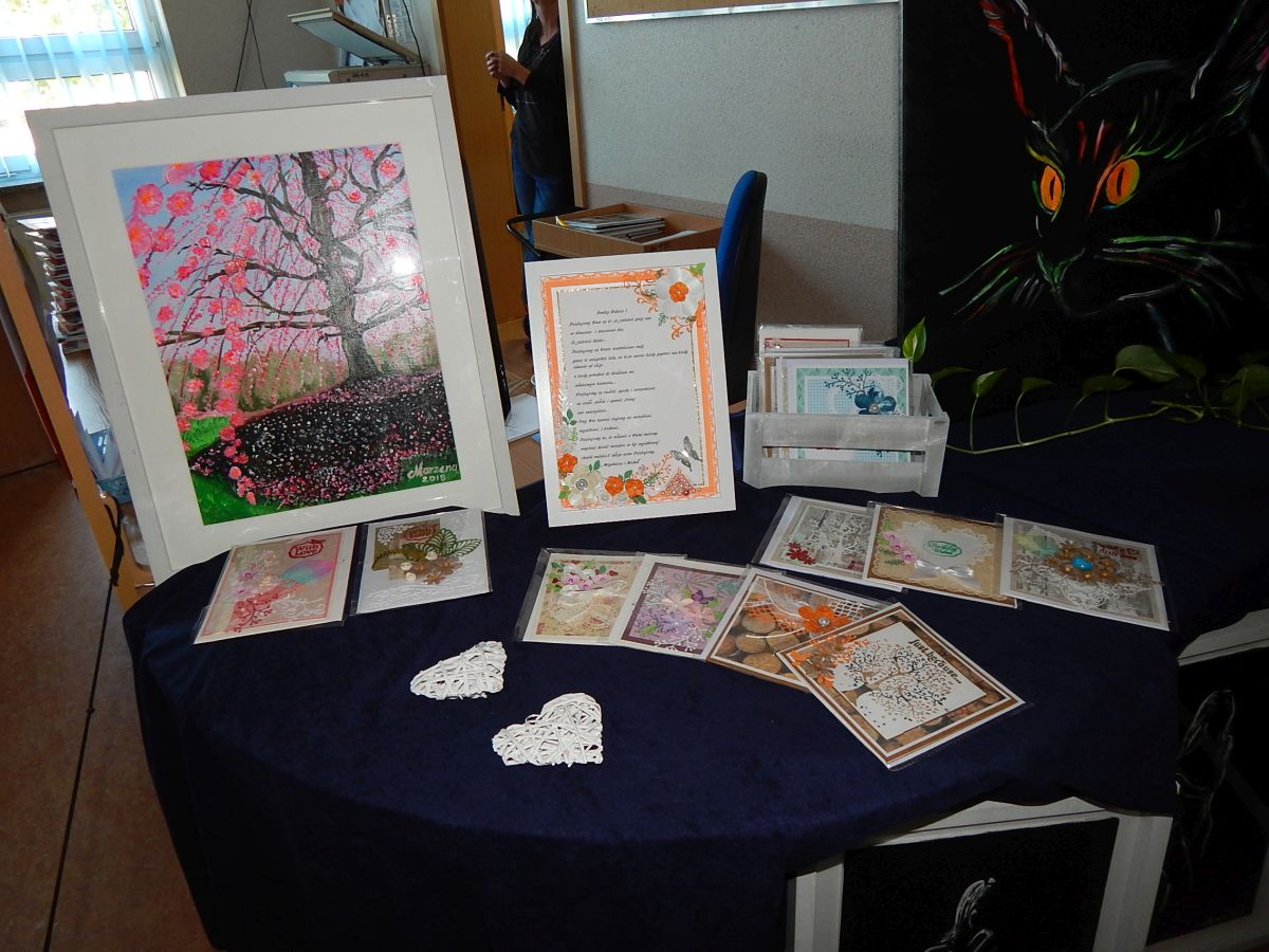 Pani Marzena inspiracje do swoich prac czerpie z internetu, sama próbuje różnych form i technik malarskich. Tworzy farbami olejnymi i akrylowymi, maluje pędzlem, gąbkami, a także palcami. Autorka wystawy maluje, zdobi odzież użytkową, profesjonalnie wykonuje przepiękne kartki okolicznościowe.
