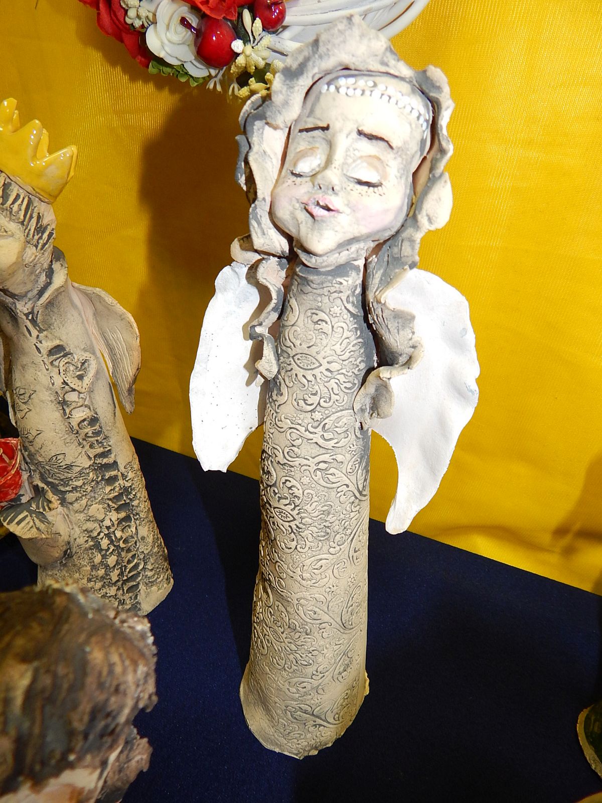 Z uwagi na to, że masa cukrowa nie jest trwałym materiałem, pani Joanna spróbowała swoich sił w innym tworzywie, tj. w glinie i masach samoutwardzalnych. Zaczęła uczestniczyć w warsztatach ceramicznych, na których mogła dalej rozwijać swoje pasje. Tworzy niepowtarzalne anioły ceramiczne oraz misy i patery, maluje portrety oraz kwiaty, wykonuje piękne ozdoby, tj. stroiki, wianki, łapacze snów, dekoracyjne spinki i przepaski do włosów, kartki okolicznościowe, a także szyje poduszeczki-przytulanki dla dzieci. Swoje pasje i zdolności stara się przekazywać dalej, prowadząc warsztaty rękodzielnicze w świetlicach środowiskowych.