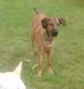 Luna to brązowej maści mieszaniec posokowca bawarskiego. Na szyi ma srebrną kolczatkę z dopiętą blaszką z imieniem Luna oraz z numerem telefonu 722 048 792.