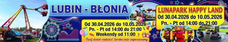 W Lubinie rozstawi się lunapark „Happy Land”. Z atrakcji, które oferuje, będzie można skorzystać od 30 kwietnia do 10 maja  na tutejszych błoniach.