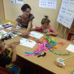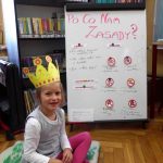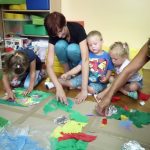 Podczas kolejnego spotkania główna bohaterka książki „Basia i wolność” uświadomiła dzieciom, że wspólne funkcjonowanie ludzi w różnych miejscach wymaga trzymania się zasad. Maluchy dyskutując ze sobą, wspólnie dochodziły do wniosków, po co nam zasady, co to jest konsekwencja i odpowiedzialność. Również tego dnia dzieci miały okazję na wykonanie ciekawych prac plastycznych. Tym razem podopieczni malowali mokrą bibułą i zdobili nią szablony bez użycia kleju, za pomocą plasteliny. Na koniec zajęć dzieci miały okazję zabawić się w teatrzyk.