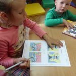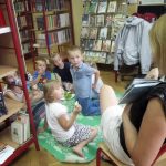 Pierwsze spotkanie rozpoczęto od głośnego czytania. Z przygodami Przemka z książki „Mali bohaterowie” zapoznała pozostałe dzieci Weronika, jedna z uczestniczek wakacyjnych zajęć. Tego dnia maluchy odpowiadały również na pytania na temat bezpieczeństwa oraz wzięły udział zajęciach plastycznych.