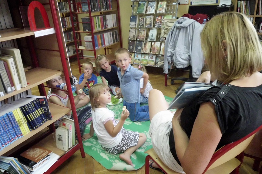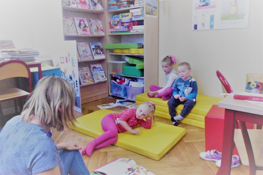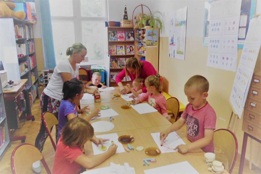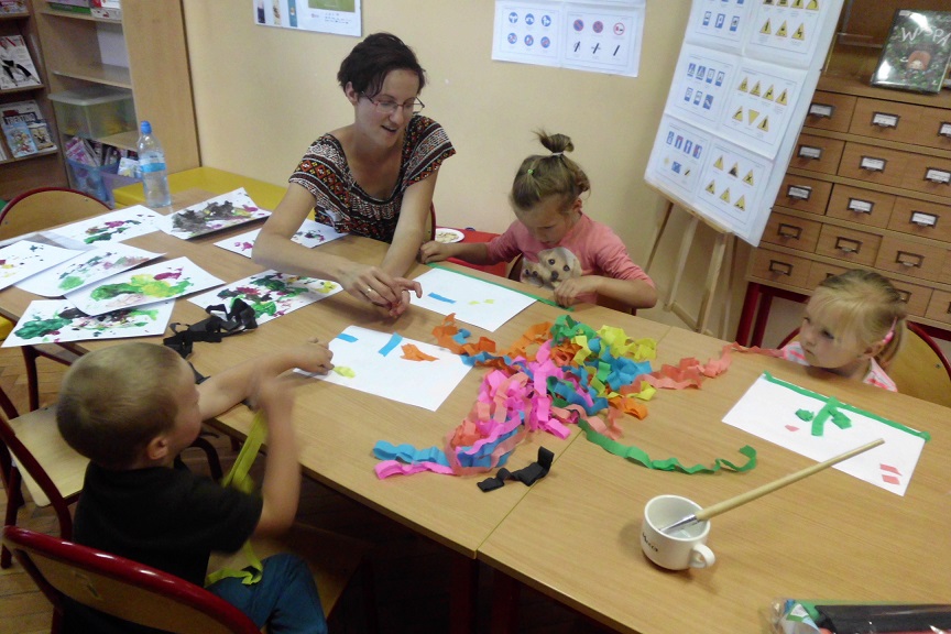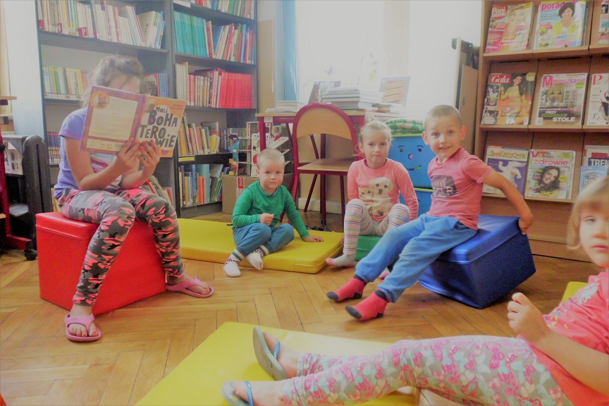 Pierwsze spotkanie rozpoczęto od głośnego czytania. Z przygodami Przemka z książki „Mali bohaterowie” zapoznała pozostałe dzieci Weronika, jedna z uczestniczek wakacyjnych zajęć. Tego dnia maluchy odpowiadały również na pytania na temat bezpieczeństwa oraz wzięły udział zajęciach plastycznych.