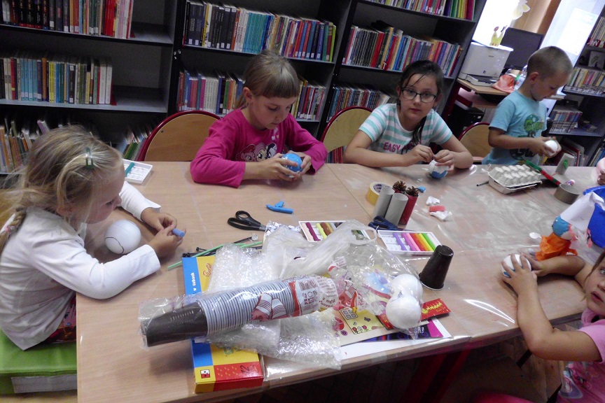 Własnoręcznie wykonana makieta bajkowej wioski Smerfów oraz niebanalne zajęcia plastyczne – dzieci, które skorzystały z zaproszenia biblioteki w Księginicach nie narzekały na nudę. Podczas wakacyjnych zajęć maluchy miały okazję nauczyć się m.in. malowania przy użyciu słomek do napojów czy mokrej bibuły. Nie mogło zabraknąć także wspólnego czytania książek oraz zabaw i gier.