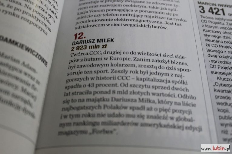 „Zeszły rok był jednym z najgorszych w historii CCC – kapitalizacja spółki spadła o 43 procent. Od szczytu sprzed dwóch lat straciła ponad 8 mld złotych wartości. Odbiło się to na majątku Dariusza Miłka (…) – pisze „Forbes”.