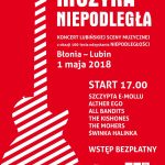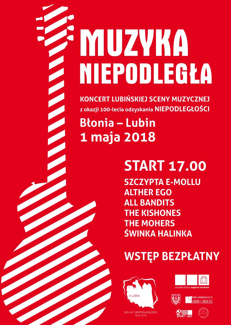 Na błoniach będzie też trochę muzyki. 1 maja zaplanowano koncert związany z obchodami 100-lecia odzyskania przez Polskę niepodległości „Muzyka Niepodległa”. Od godziny 17 na scenie będą występować lubińscy muzycy: Szczypta E-mollu, Alther Ego, All Bandits, the Kishones, the Mohers oraz Świnka Halinka. Wszyscy wykonają piosenki przygotowane specjalnie na to wydarzenie, utwory pochodzące z ostatniego stulecia we własnej aranżacji.
