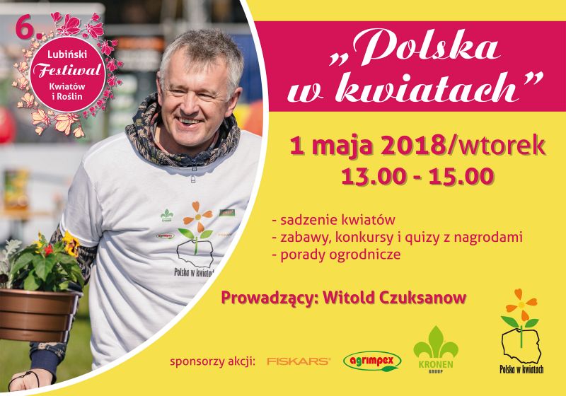 – 13–15 „Polska w kwiatach”: sadzenie kwiatów, zabawy, konkursy i quizy z nagrodami, porady ogrodnicze, prowadzący – Witold Czuksanow