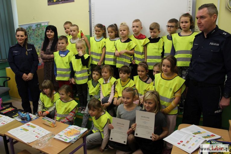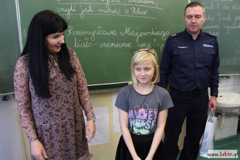 Dziś obie dziewczynki w obecności swoich kolegów z klas odebrały gratulacje od lubińskich policjantów.