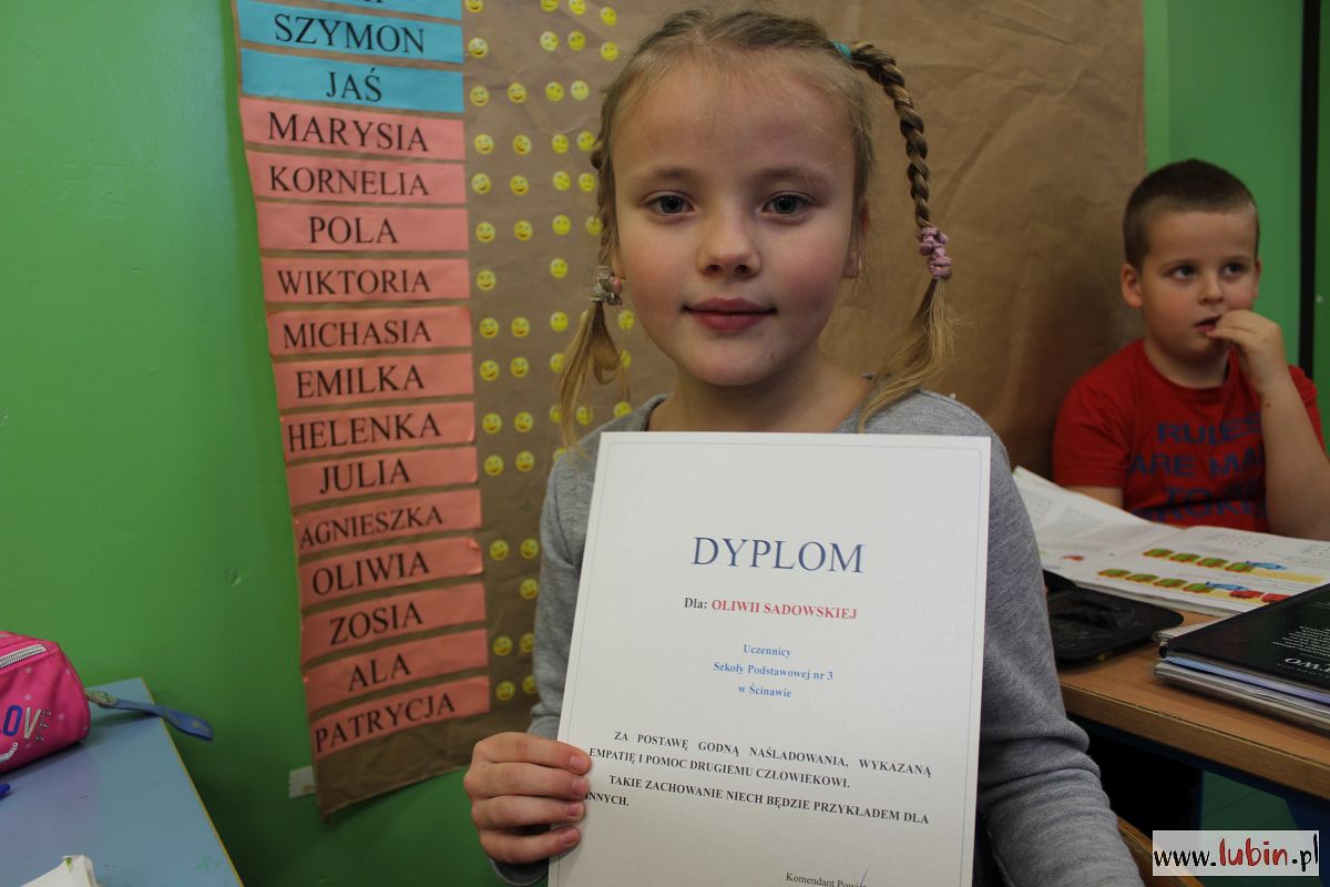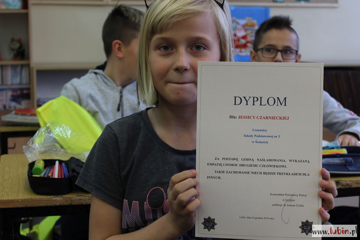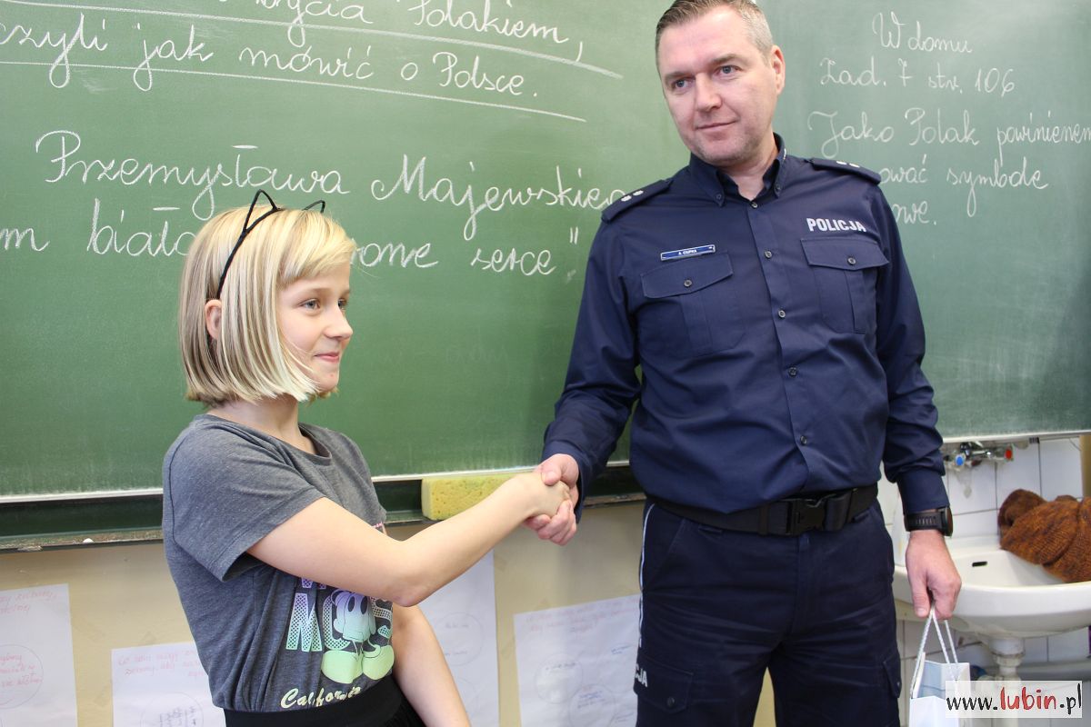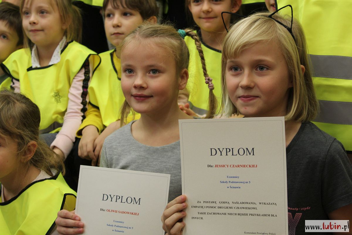 Dziś obie dziewczynki w obecności swoich kolegów z klas odebrały gratulacje od lubińskich policjantów.