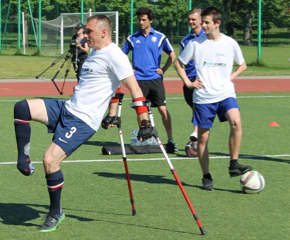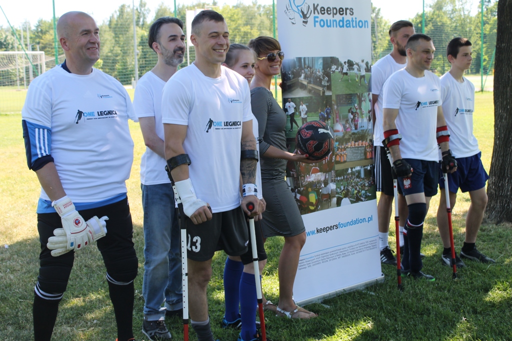W inauguracyjnym treningu udział wzięło także trzech piłkarzy pierwszoligowej Miedzi Legnica: bramkarz Paweł Kapsa oraz pomocnicy Filip Karbowy i pochodzący ze Stanów Zjednoczonych Hunter Gorskie. Ich rywale udowodnili, że można świetnie bronić bramki nie mając jednej ręki i strzelać gole tylko jedną nogą.