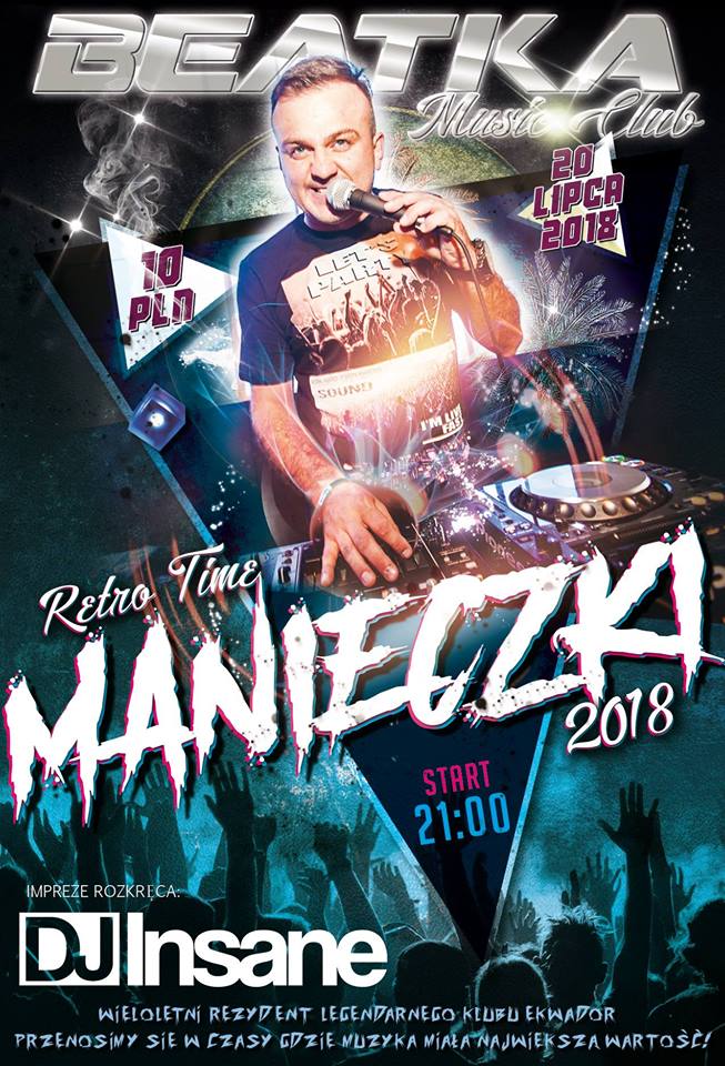 Początek imprezy Manieczki Retro Tour 2018 part II 20 lipca o godzinie 21. Bilety wstępu kosztują 10 zł. Rezerwacja pod numerem telefonu: 665 655 325.