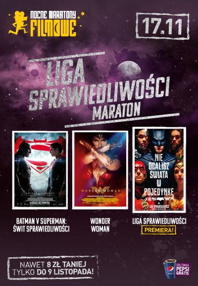 Jednej nocy będzie można obejrzeć aż trzy filmy: „Batman v Superman: Świt sprawiedliwości”, „Wonder Woman” i „Liga Sprawiedliwości”.