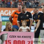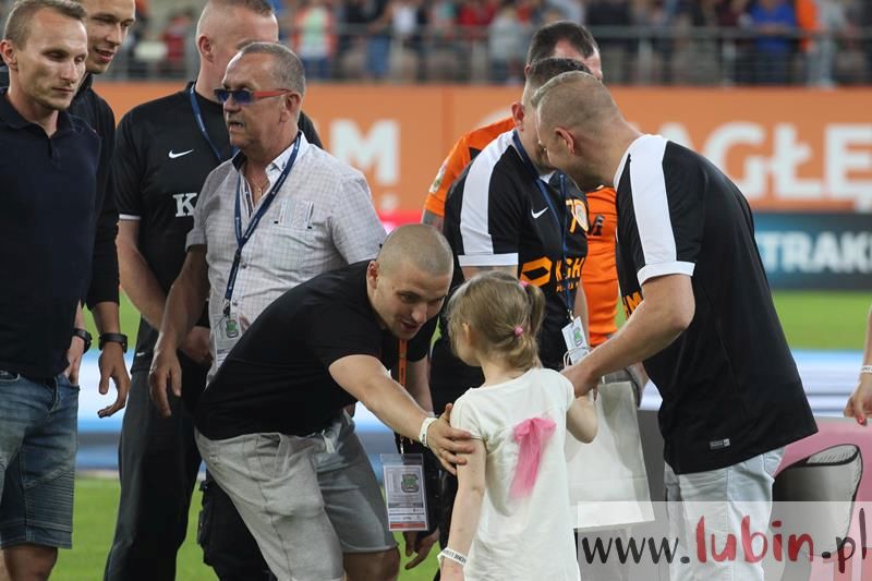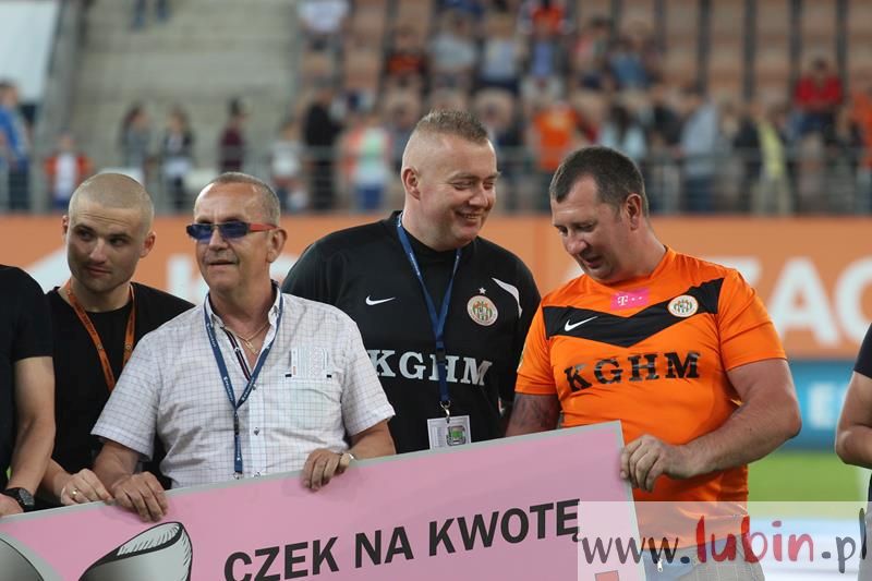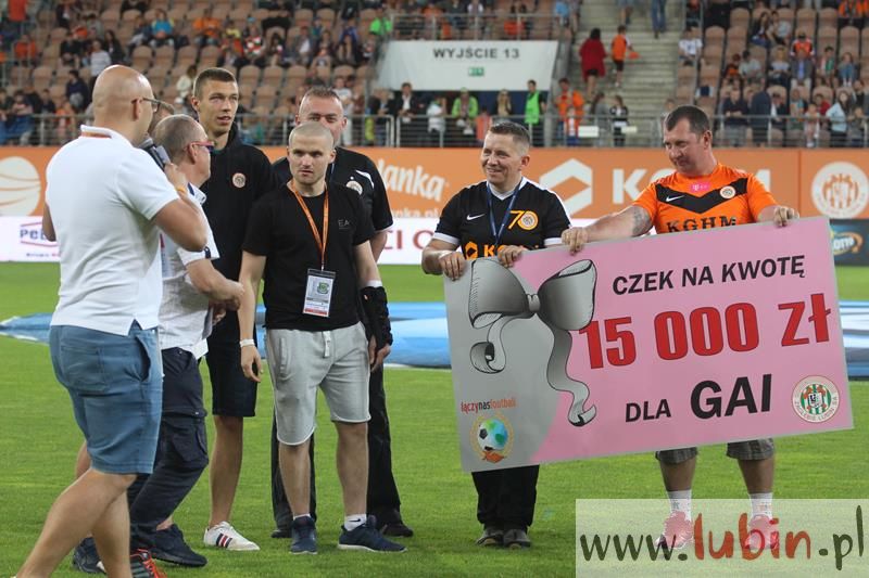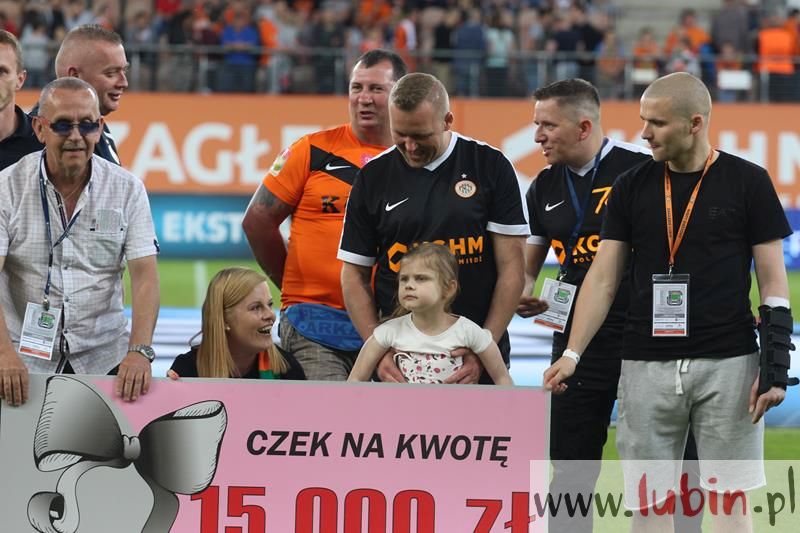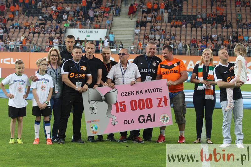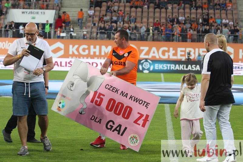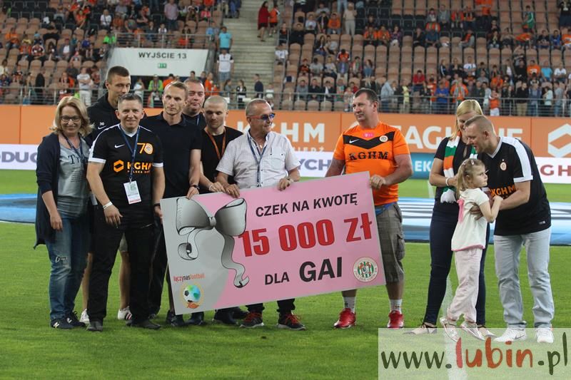 W przerwie meczu na murawę wyszła Gaja z rodzicami, którym czek na 15 000 złotych przekazali piłkarze Adrian Błąd i Krzysztof Janus, a także członkowie Stowarzyszenia Fanatyków Zagłębia Lubin. Ta mała uroczystość to podsumowanie turnieju charytatywnego dla dziewczynki w Świdnicy.
