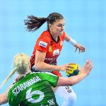 Mecz dwóch najlepszych drużyn zaczął się od trafienia Joanny Szarawagi, ale Miedziowe za sprawą Klaudii Pielesz szybko wyrównały. W ósmej minucie na tablicy wyników znów był remis, tym razem 3:3. Obie drużyny grały uważnie w obronie i starały się nie popełniać błędów. Zespół z Lubelszczyzny w krótkim czasie dorzucił dwie bramki i zrobiło się 3:5. Chwilę później to lubinianki były na prowadzeniu, rzucając trzy bramki z rzędu i łapiąc przy tym wiatr w żagle. Na parkiecie szalała skrzydłowa Miedziowych Adrianna Górna, która po dwudziestu minutach miała na swoim koncie już pięć trafień, a Metraco Zagłębie prowadziło 12:8. Do końca pierwszej połowy podopieczne Bożeny Karkut i Renaty Jakubowskiej utrzymywały 3-4 bramkową przewagę i do szatni schodziły przy wyniku 16:13.