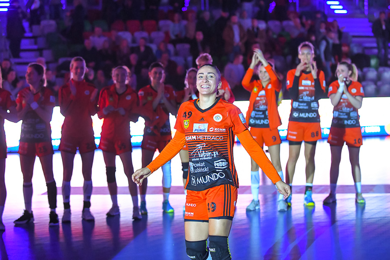 Zaraz po przerwie lubinianki szybko dorzuciły dwie bramki i wyszły na 3-bramkowe prowadzenie. Pięć minut po zmianie stron o kolejny czas, przy stanie 17:13, poprosił Andrzej Niewrzawa. W 40. minucie było już 20:14 dla Metraco Zagłębia, ale chwilowy przestój sprawił, że zawodniczki z Elbląga rzuciły cztery bramki z rzędu i wróciły do gry. Miedziowe utrzymywały 3-4 bramkową przewagę nad rywalkami, grały pewnie i skutecznie, zmierzając do kolejnego ligowego zwycięstwa. Prawdziwą „brazylianę” pokazała dziś Patricia Matieli, która oprócz znakomitego rozgrywania piłki zdobywała bramki, po których ręce same składały się do oklasków.