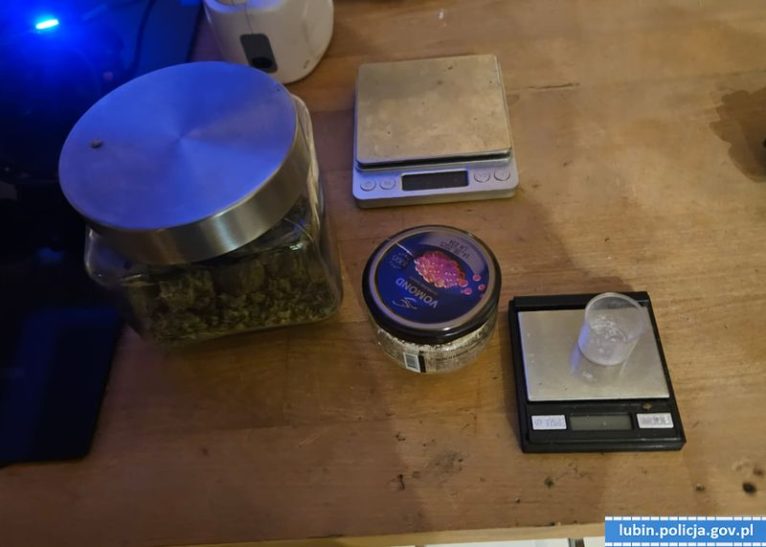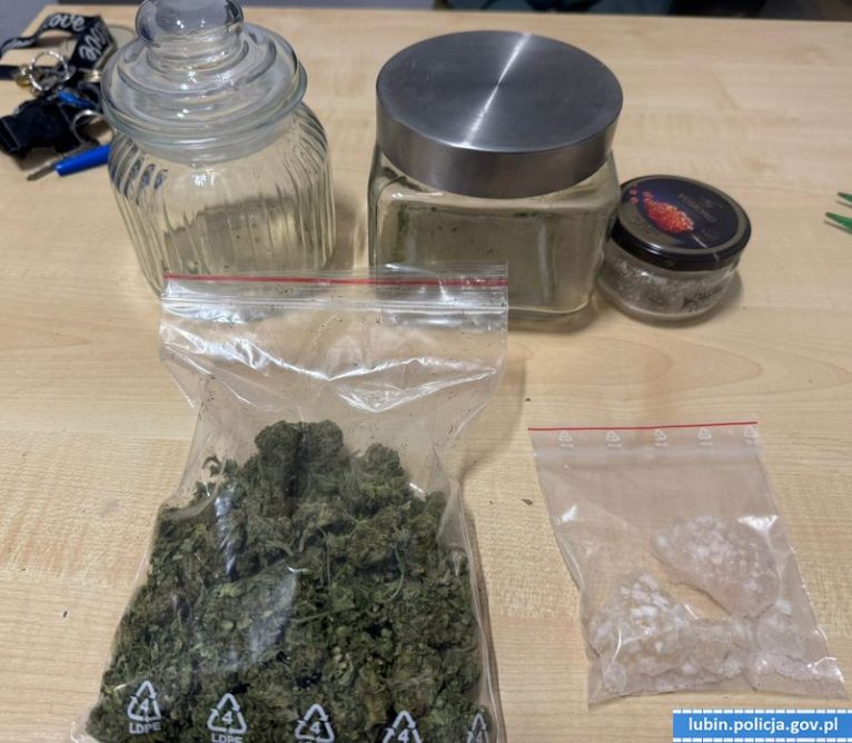 Lubińscy policjanci zatrzymali 25-latka, który miał w swoim mieszkaniu marihuanę i substancje psychotropowe. Przy okazji wpadł jeszcze jeden mężczyzna, który widząc funkcjonariuszy próbował ukryć w kontenerze pakunek z narkotykami.