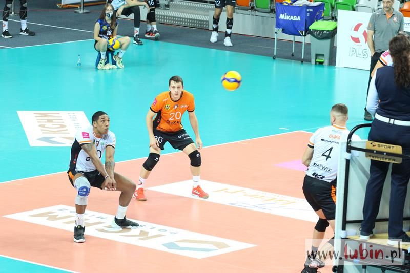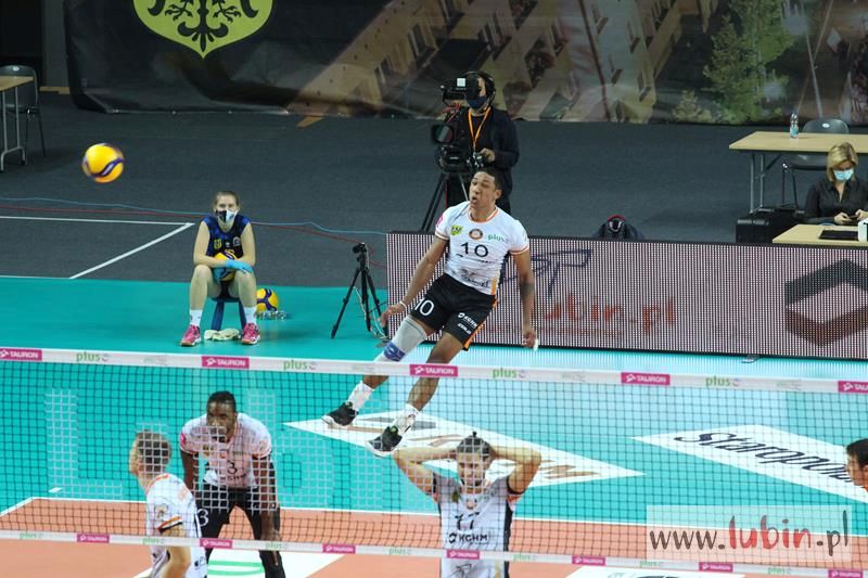 Od początku tego spotkania, bardzo mocno we znaki rywalom dali się Daniel Muniz de Oliveira, który otworzył wynik pierwszego seta, a także atakujący Ronald Jimenez. Warto podkreślić, że Miedziowe Lisy wystąpiły w okrojonym składzie, a swoją pozycję z libero na przyjmującego zamienił w tym meczu Bartosz Makoś. Gospodarze grali więc jednym libero przez wszystkie sety, a był nim Kamil Szymura. Pierwszego seta Miedziowi przegrali 15:25.