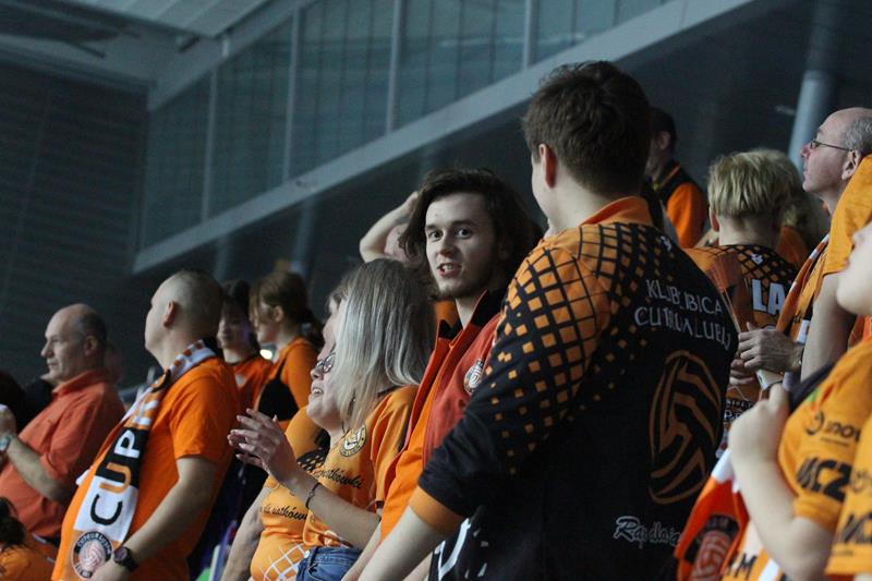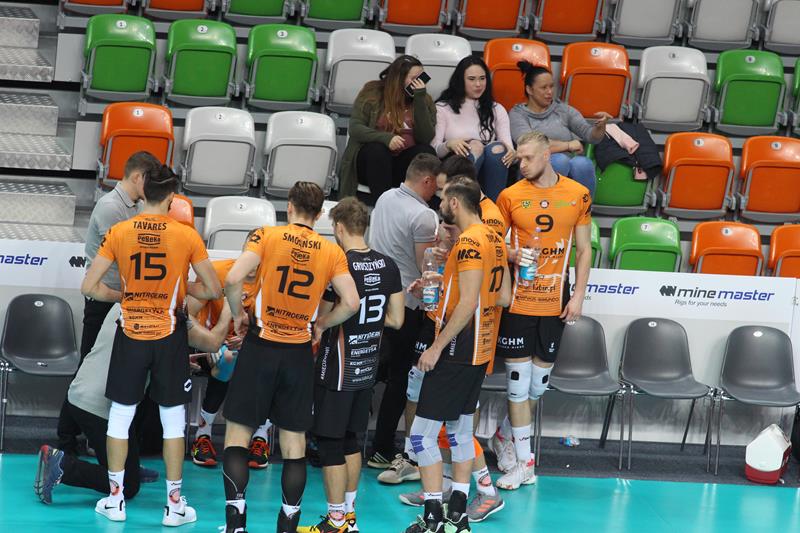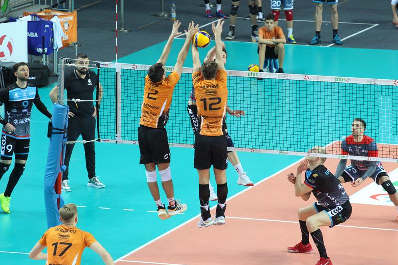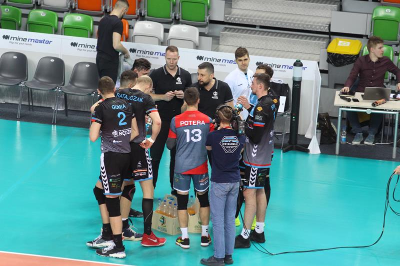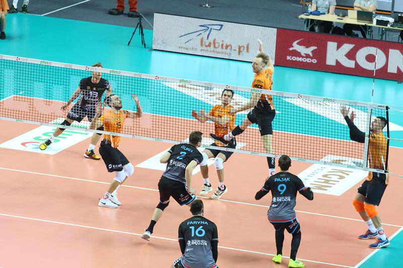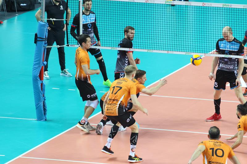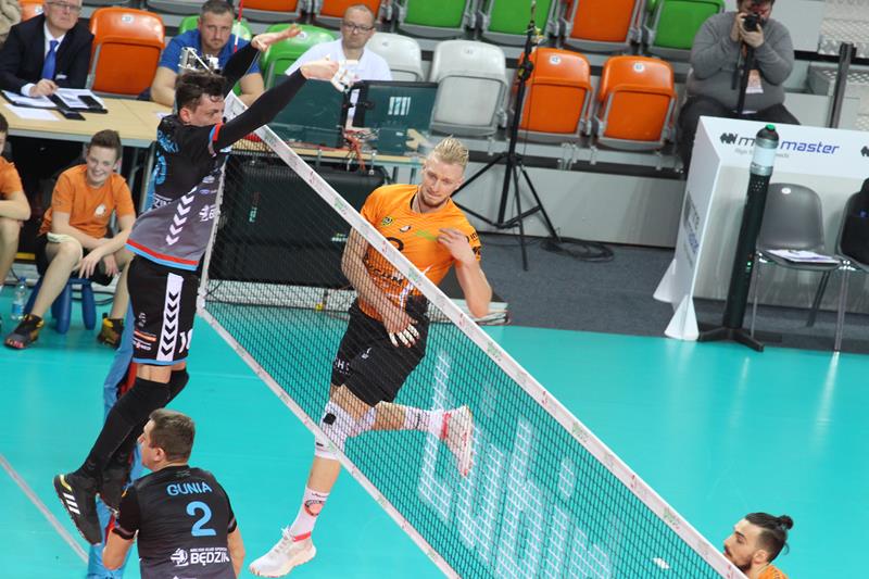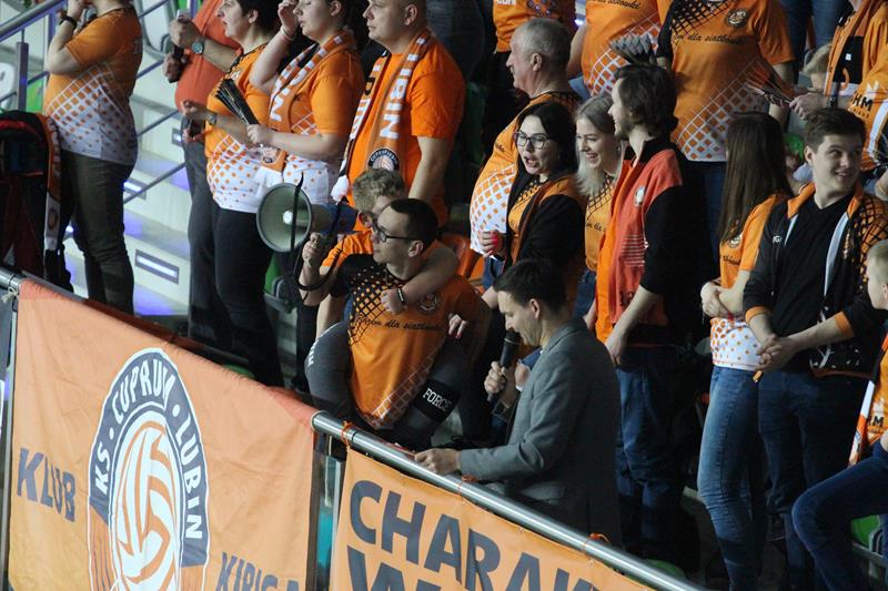 Spotkanie odbyło się o późnej godzinie, jednak przywiodło na trybuny kibiców obu ekip, którzy przez cały mecz mocno wspierali swoje zespoły. Już na początku spotkania mieliśmy sporo emocji. Pierwszy set grany na przewagi z początku był jednak prowadzony pod dyktando gospodarzy, którzy wygrywali 5:3, a po chwili 12:9. Goście doprowadzili jednak do remisu po 23. Cuprum prezentowało solidniejszy blok, co pozwoliło drużynie wygrać 28:26. Pomimo skutecznych ataków spod siatki przyjmującego Kamila Maruszczyka czy wysokich podwójnych bloków Bartłomieja Lipińskiego i Damiana Domagały, druga część meczu należała do ekipy Jakuba Bednaruka. Trzeci set, „Miedziowe Lisy” do pewnego momentu prowadziły pod swoje dyktando, aplikując rywalom choćby asa serwisowego autorstwa Bartłomieja Lipińskiej czy wiele innych mocnych zagrywek. Pomimo tego faktu, wygrał Będzin. Czwarty set to już pełna kontrola Cuprum Lubin, które mocno odskoczyło punktowo rywalom, pokonując ich 25:17. Tie-break od początku również dobrze zaczęli gospodarze. Cuprum wygrało 15:8 i zainkasowało 2 punkty.