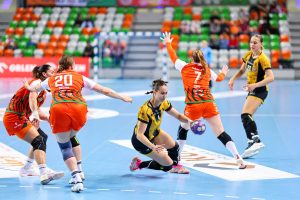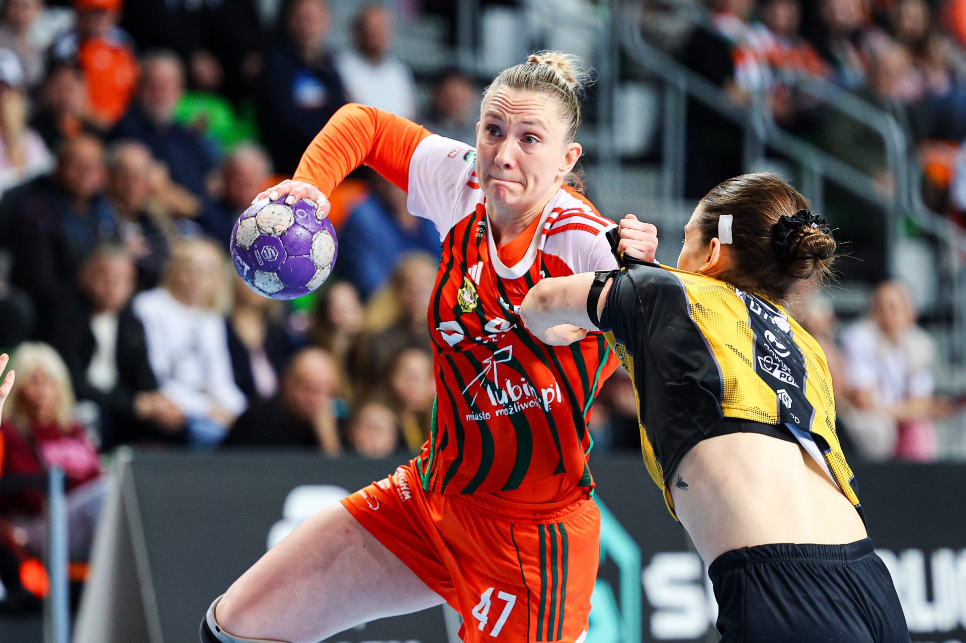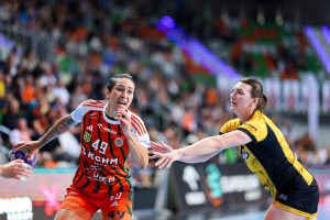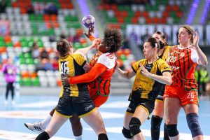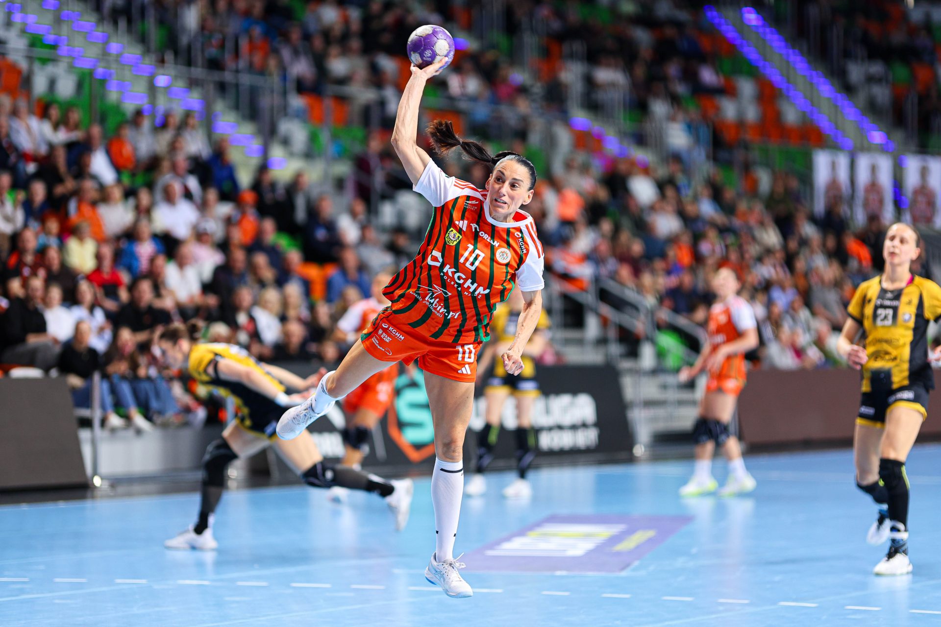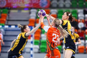 Po zmianie stron gospodynie nie zamierzały zwalniać tempa. Już w pierwszych pięciu minutach drugiej połowy zdobyły cztery bramki, tracąc zaledwie jedną, dzięki czemu ich przewaga urosła do niemal dziesięciu trafień. Choć w kolejnych fragmentach spotkania przyjezdne zdołały nieco zmniejszyć straty, Miedziowe przez cały czas kontrolowały przebieg gry, utrzymując bezpieczną, siedmio- lub ośmiobramkową przewagę. Na kwadrans przed końcem było 19:12, a w 50. minucie już 23:13, co praktycznie przesądzało o losach rywalizacji.